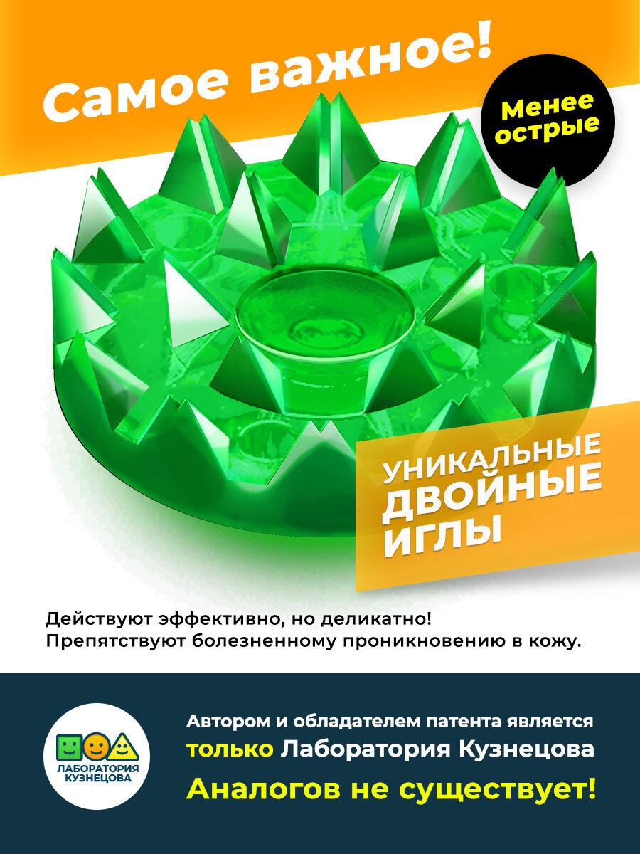 | Дополнительная информация | мягкая подложка толщиной 0,6 см; двойное острие игл, препятствует глубокому проникновению игл в кожу |