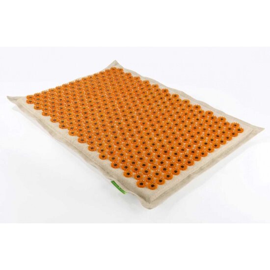 Аппликатор Кузнецова. Тибетский акупунктурный массажный коврик акупунктурный 41х60 см, массажер на мягкой подложке 2 см., желтый (более острые иглы, магнитные вставки). Цвет ткани - "натуральный лён"