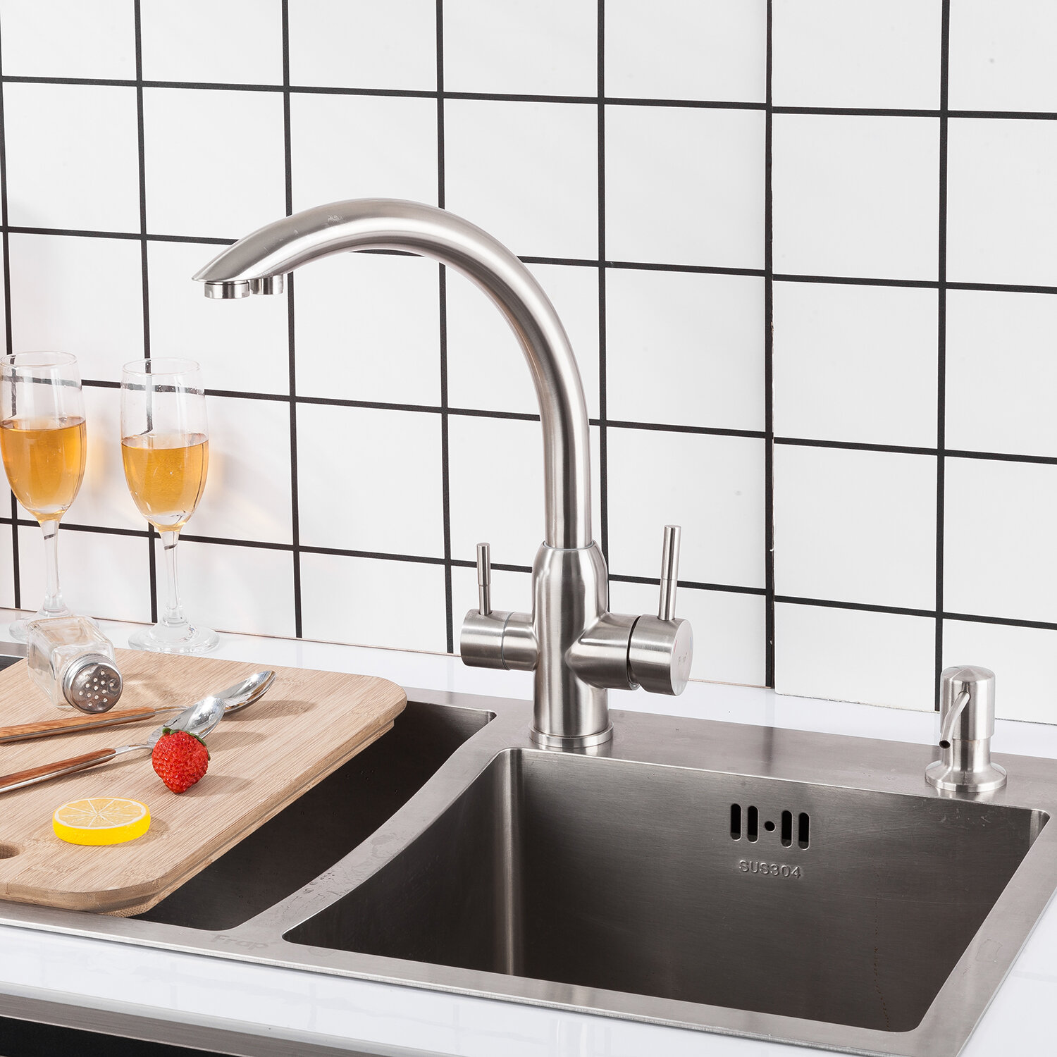 Смеситель для кухни, Frap, с картриджем, с подключением к фильтру, нержавеющая сталь, F43899