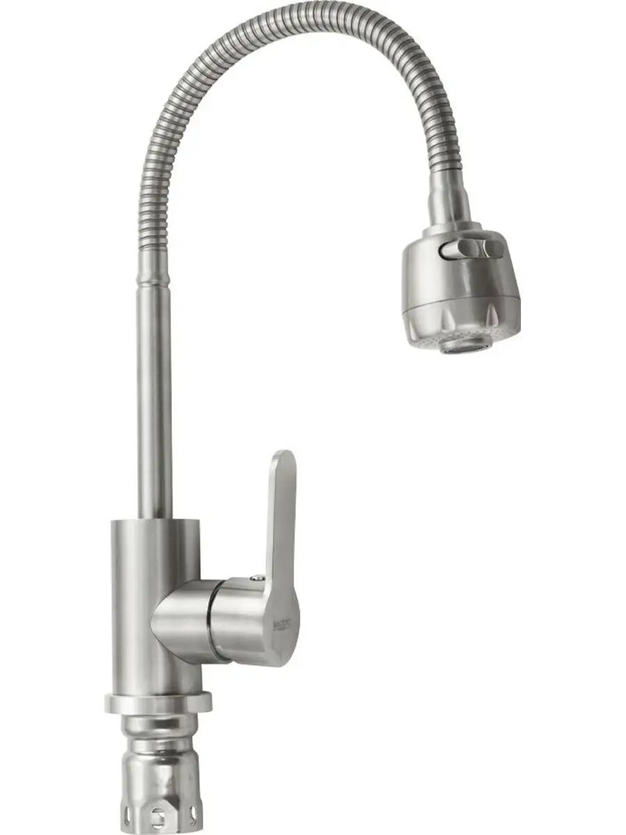 Смеситель для кухни MAGNUS с гибким изливом и большим двухрежимным аэратором /нержавеющая сталь/ Цвет сатин.