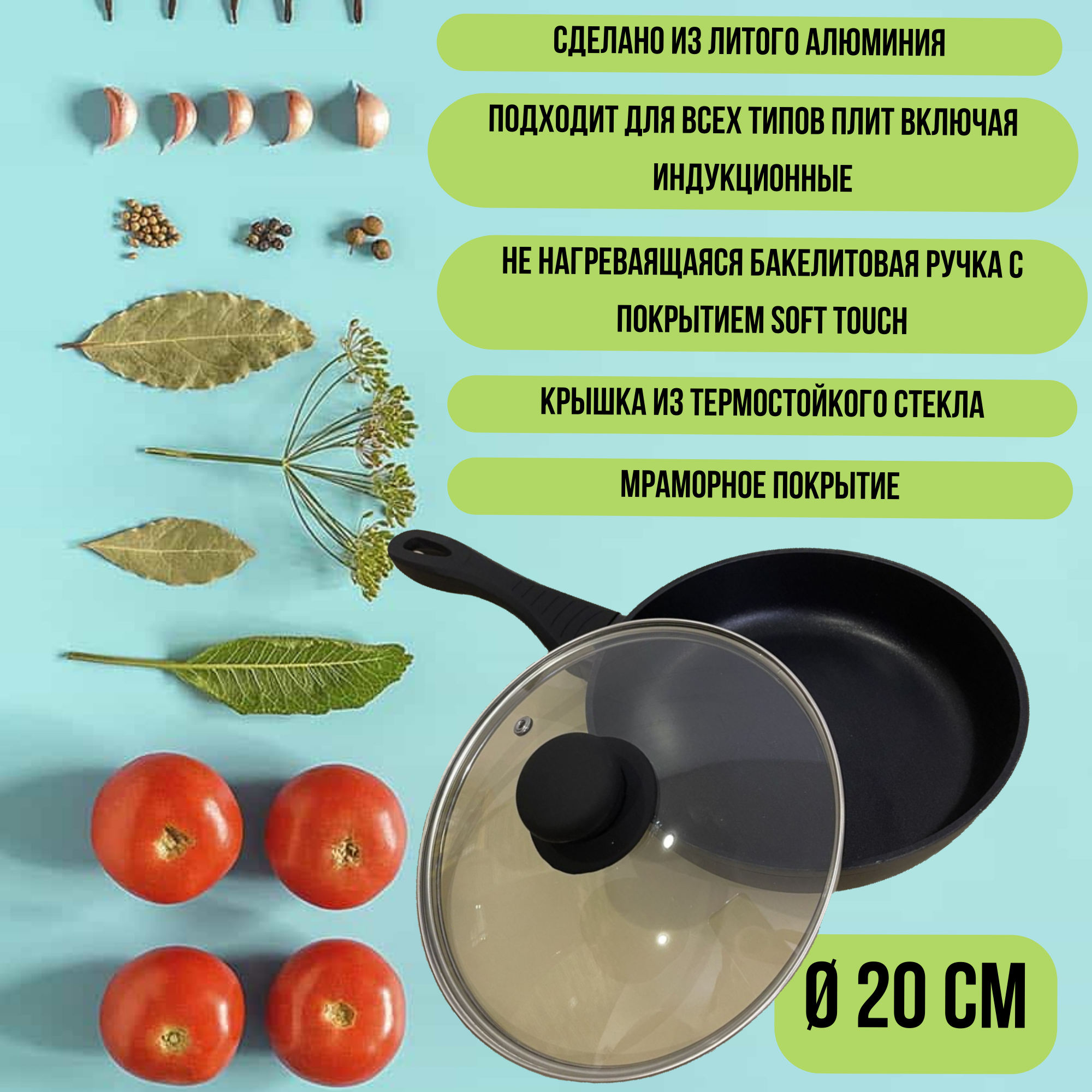 Сковорода из литого алюминия с антипригарным мраморным покрытием 20см. НМ 9820 интересное: