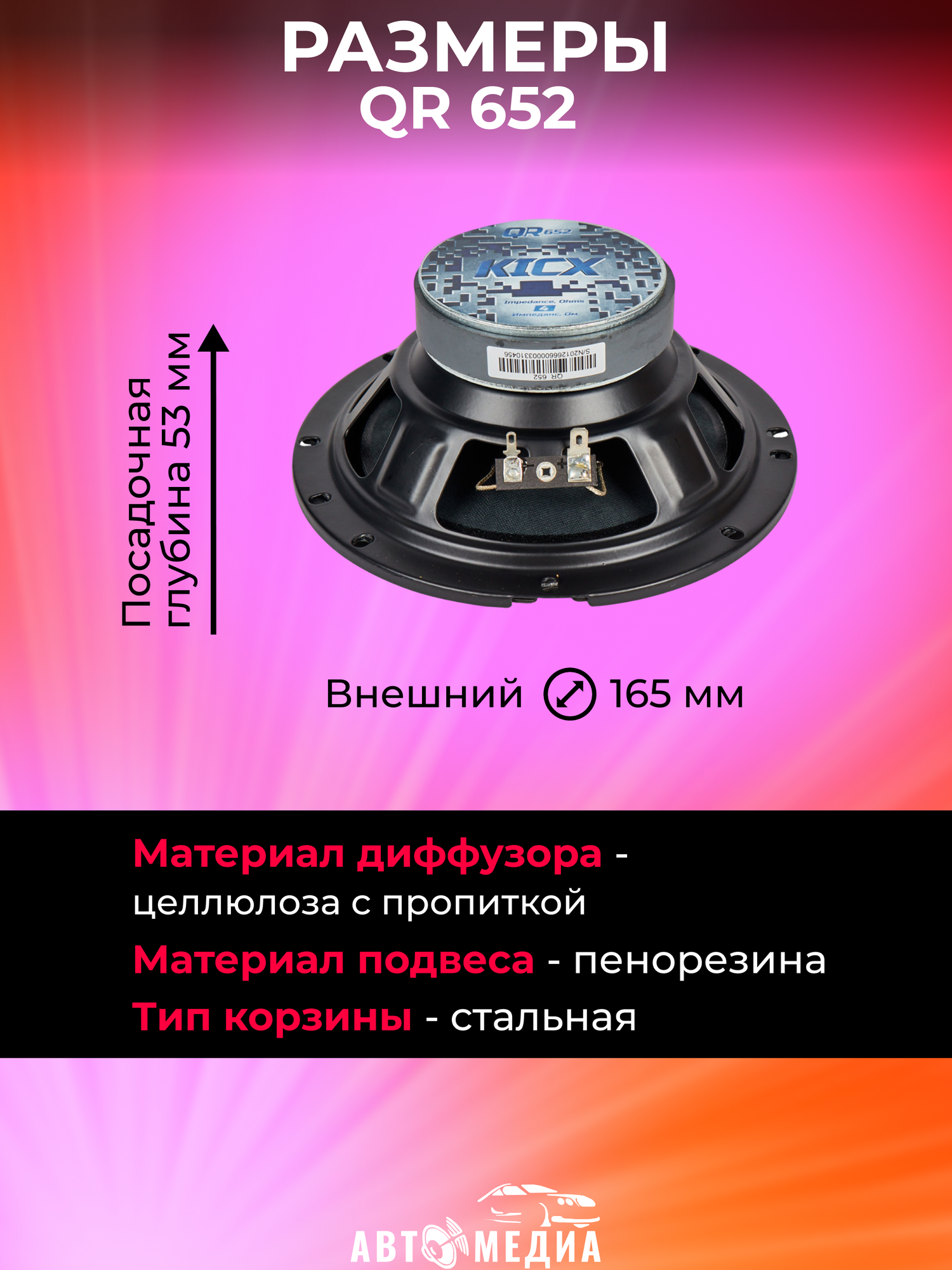 Автомобильная акустика динамики Kicx 2-x полосная коаксиальная акустика QR 652 интересное: