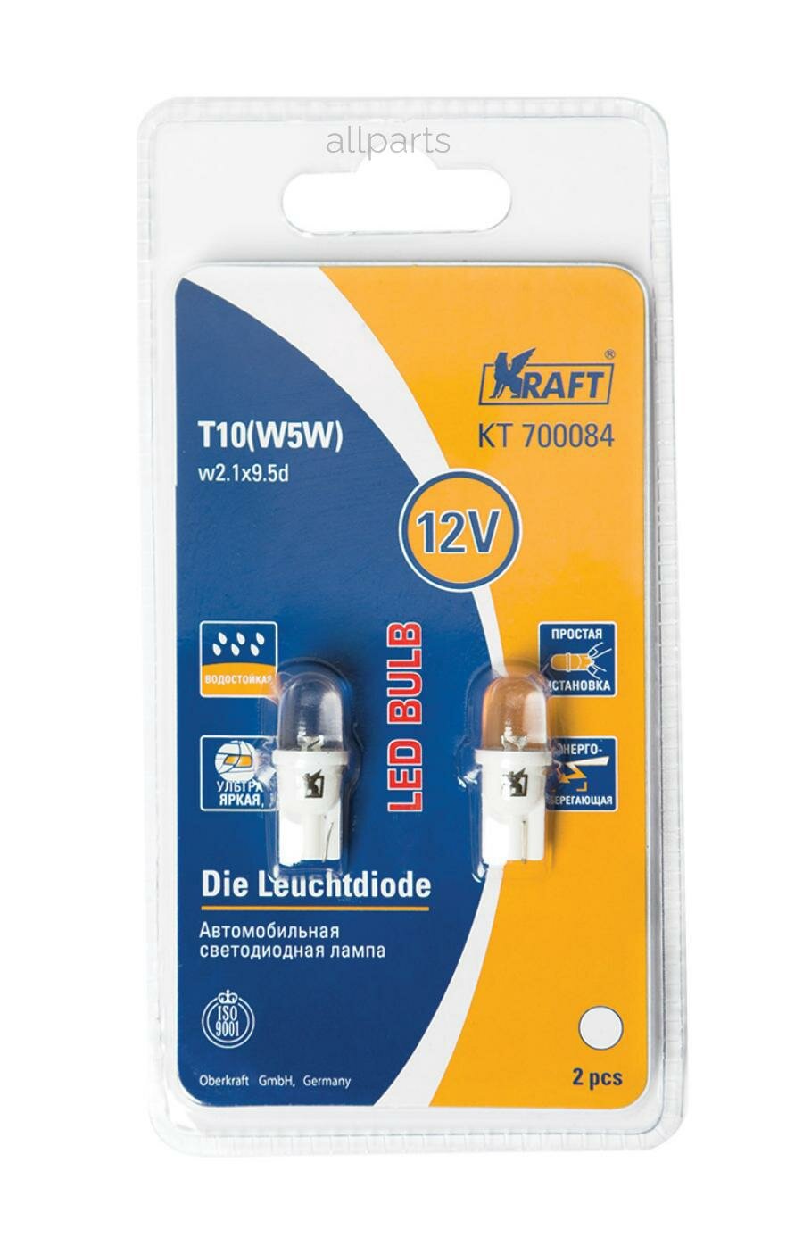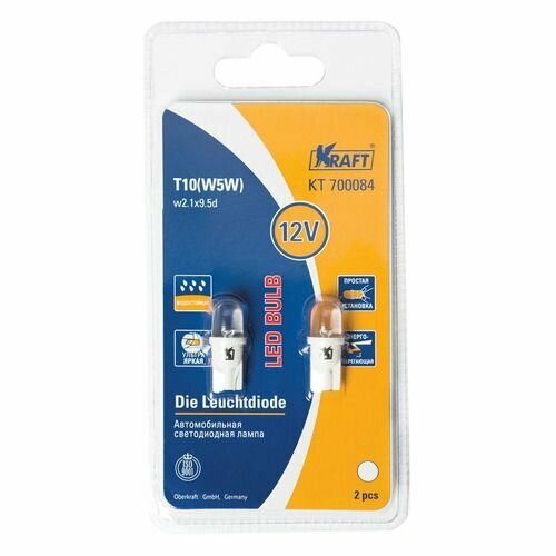 Купить KRAFT AUTOMOTIVE KT700084 Лампа светодиодная 12V W5W 5W W2,1x9,5d KRAFT 2 шт. картон
