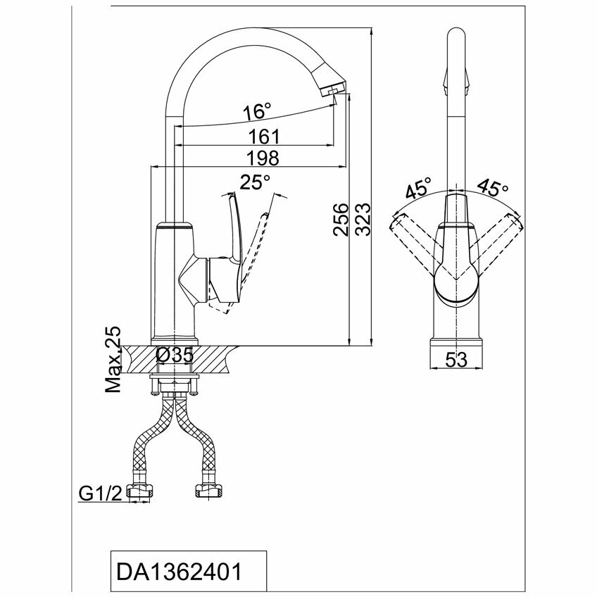 D&K Смеситель для кухни D&K da1362401 Хром