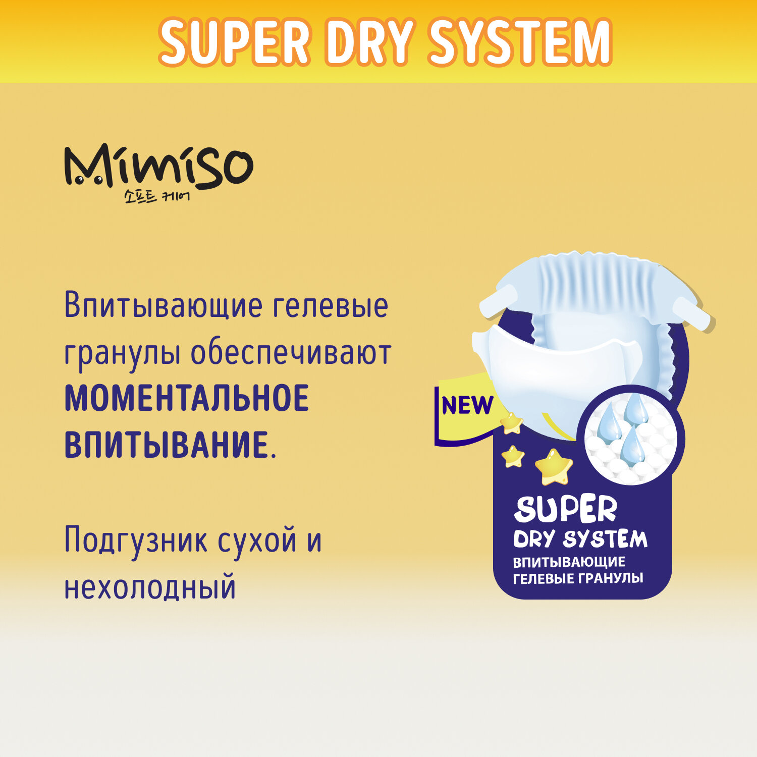 Через 2-3 часа поверхность внутри подгузника влажная, что приносить небольшой дискомфорт |