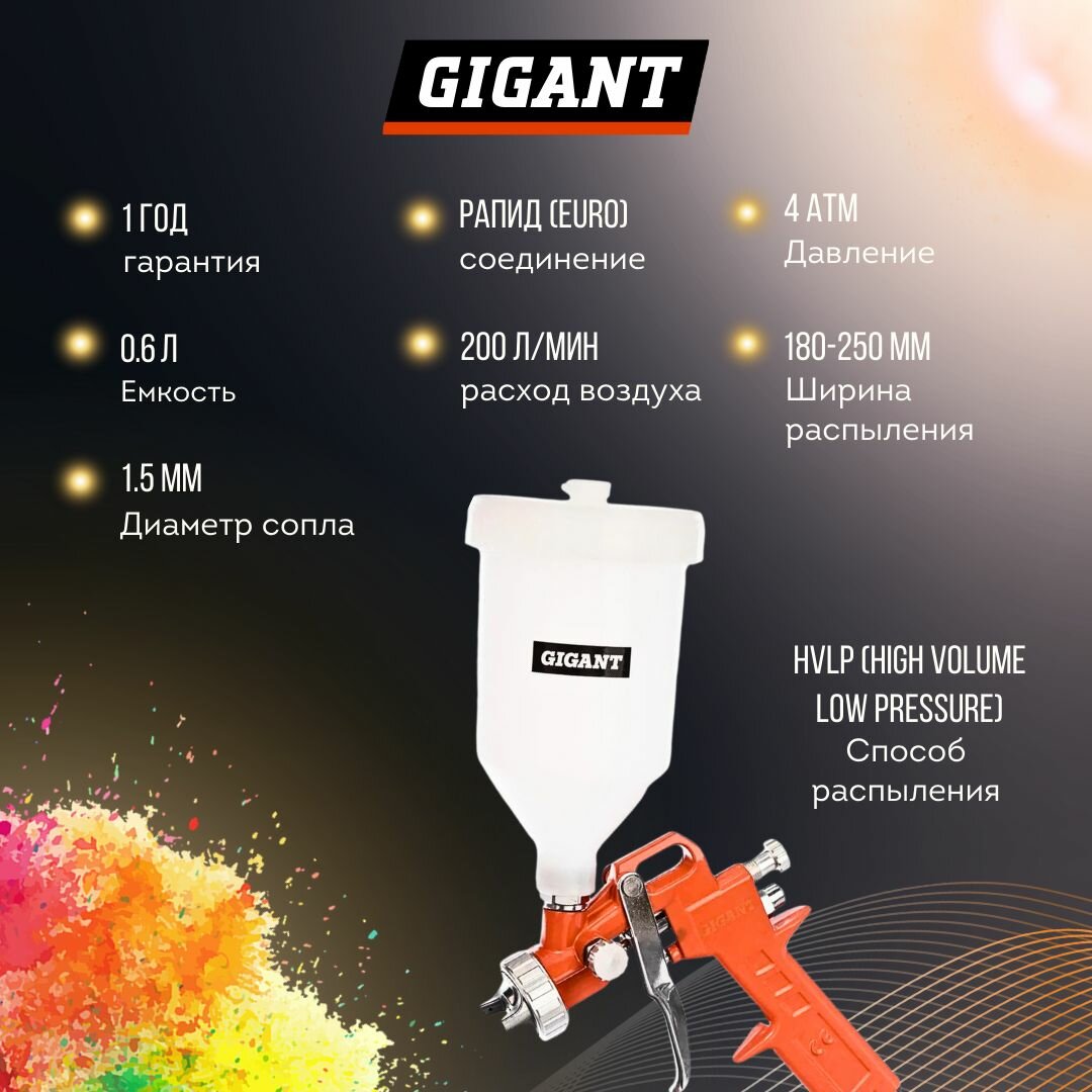 Краскораспылитель (сопло 1,5 мм; бачок 0,6 л, НVLP) Gigant SP 178