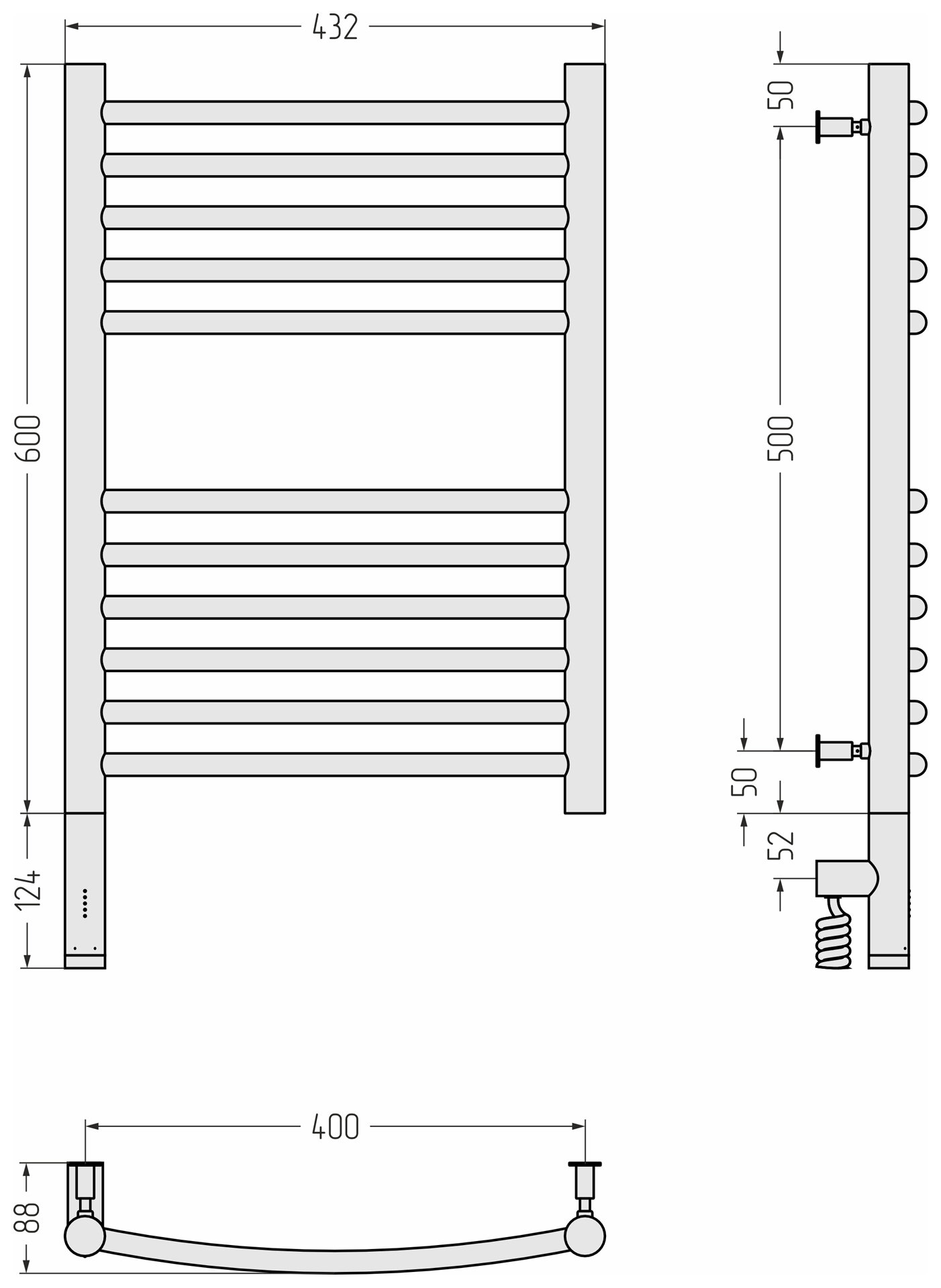 Электрический полотенцесушитель Сунержа Богема 3.0 выгнутая 600x400 МЭМ Лев. арт. 00-5802-6040