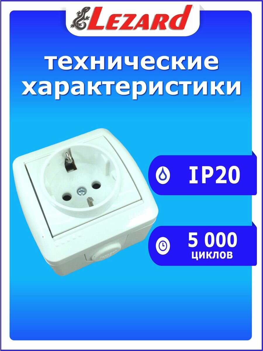 Розетка Lezard ОП одноместная с заземлением белая 710-0200-122