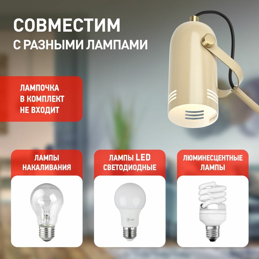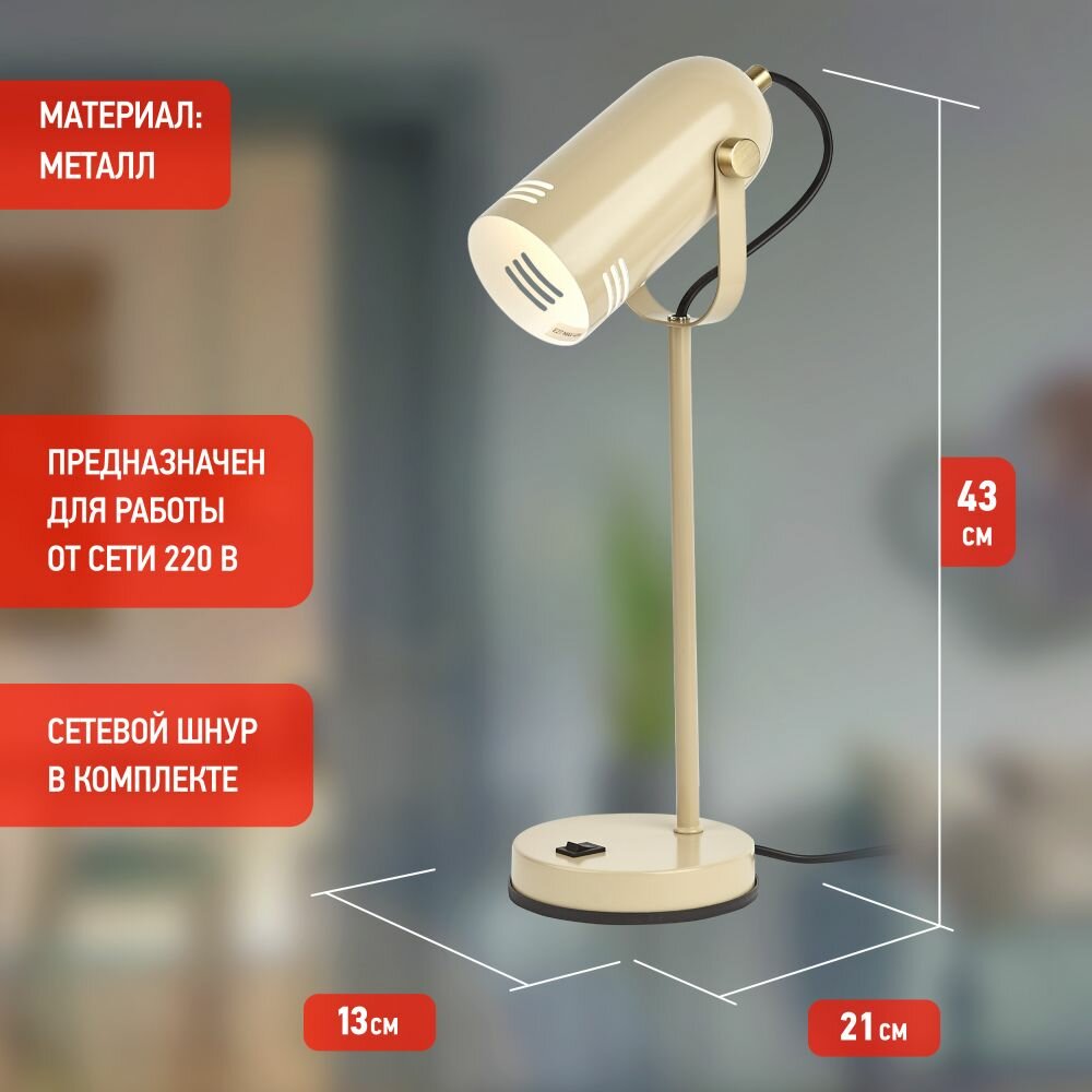 Светильник современный настольный для учебы, работы ЭРА N-117-Е27-40W-BG 40W E27 бежевый