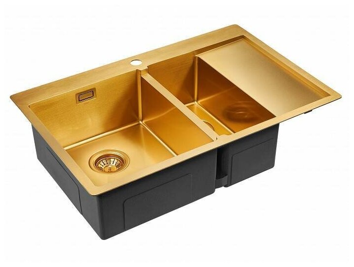 Купить Мойка для кухни из нержавеющей стали Paulmark UNION, 780х510 мм, мойка слева, PVD покрытие, отверстие под смеситель, врезная / вровень со столешницей, цвет брашированное золото, PM537851-BGL