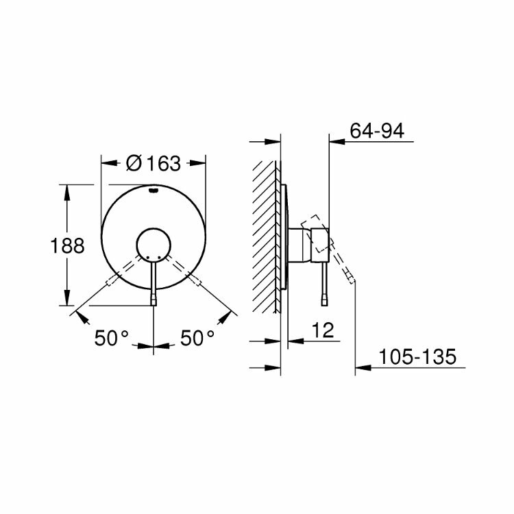 Лицевая часть встраиваемого смесителя Grohe Essence, арт. 19286DL1, 1 функция, бронза, матовый, 16.3 см