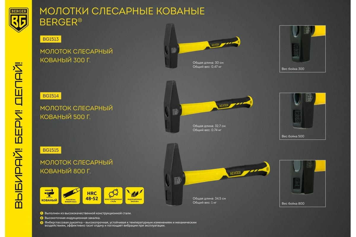 Кованый слесарный молоток Berger BG BG1515 интересное: