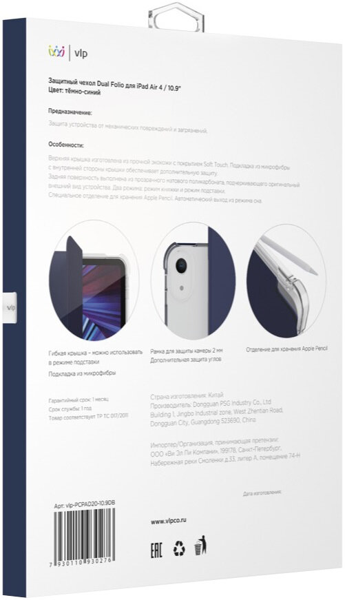 СохранитьЧехол-книжка VLP Dual Folio with Penсil slot для iPad Air 4 10.9" (2020) (Цвет: Dark Blue) интересное: