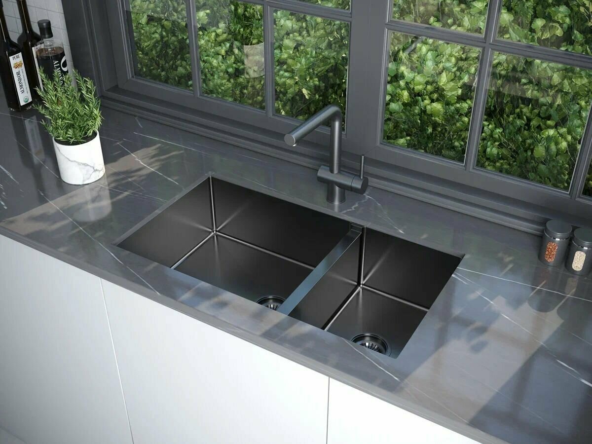 СохранитьСмеситель для кухни из нержавеющей стали AISI 304 Paulmark DOSSE, гибкий излив (вытяжной), высокий, поворотный 180 , для мойки / столешницы, вороненая сталь, Do214418-GM интересное: