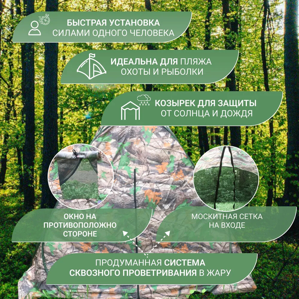 Палатка туристическая 4 местная однослойная автоматическая. Кемпинговая четырехместная для рыбалки пляжа. 1623B интересное: