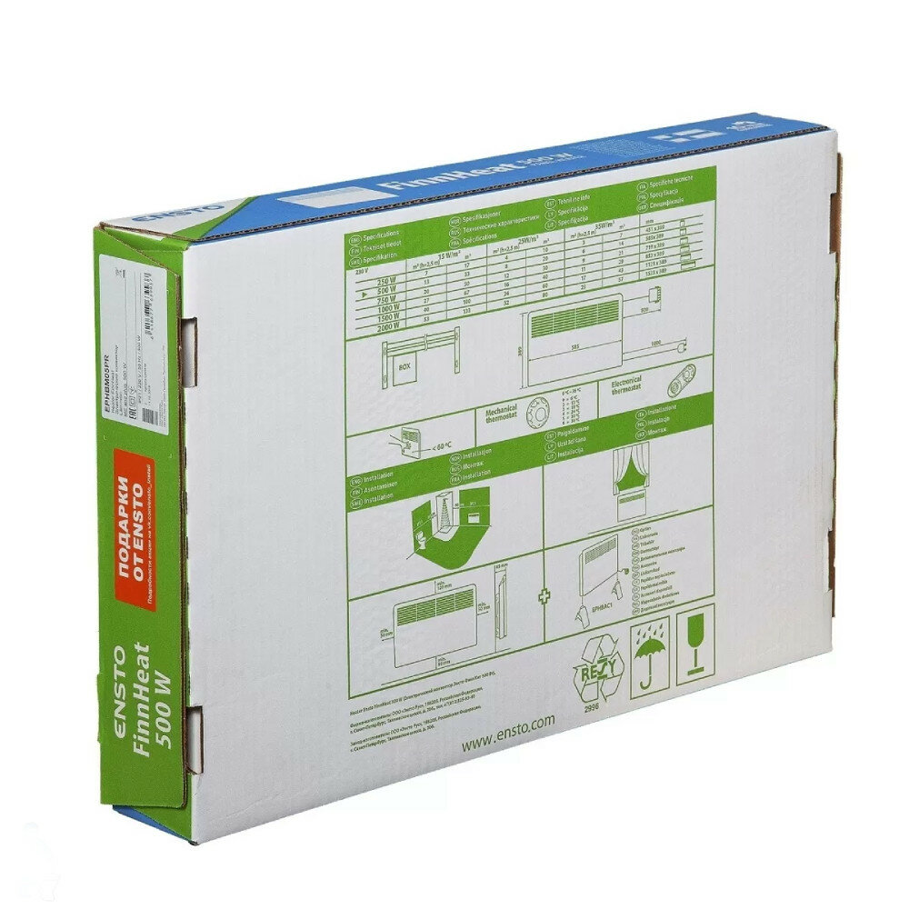 Купить Конвектор электрический Ensto EPHBEBT05PR 500Вт, обогреватель для дома, 3599