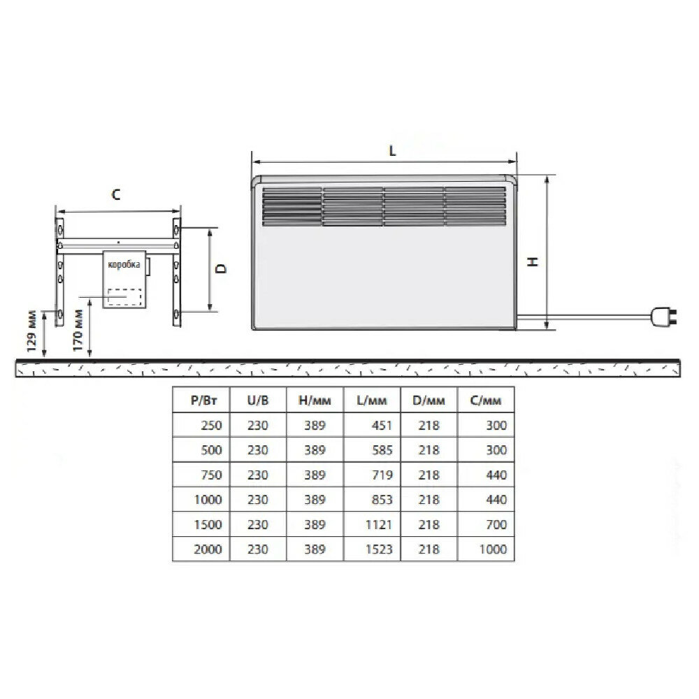 | Тип обогревателя | конвектор |