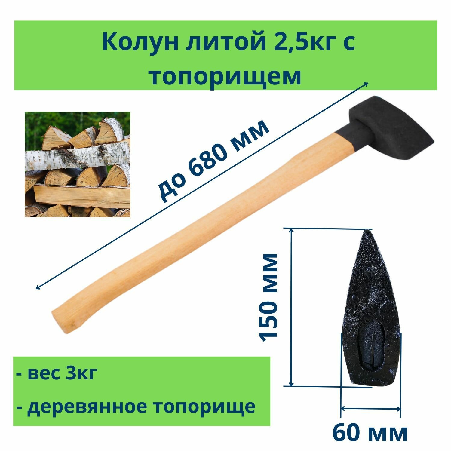 | Тип | колун / прочная литая конструкция,удобная рукоятка |