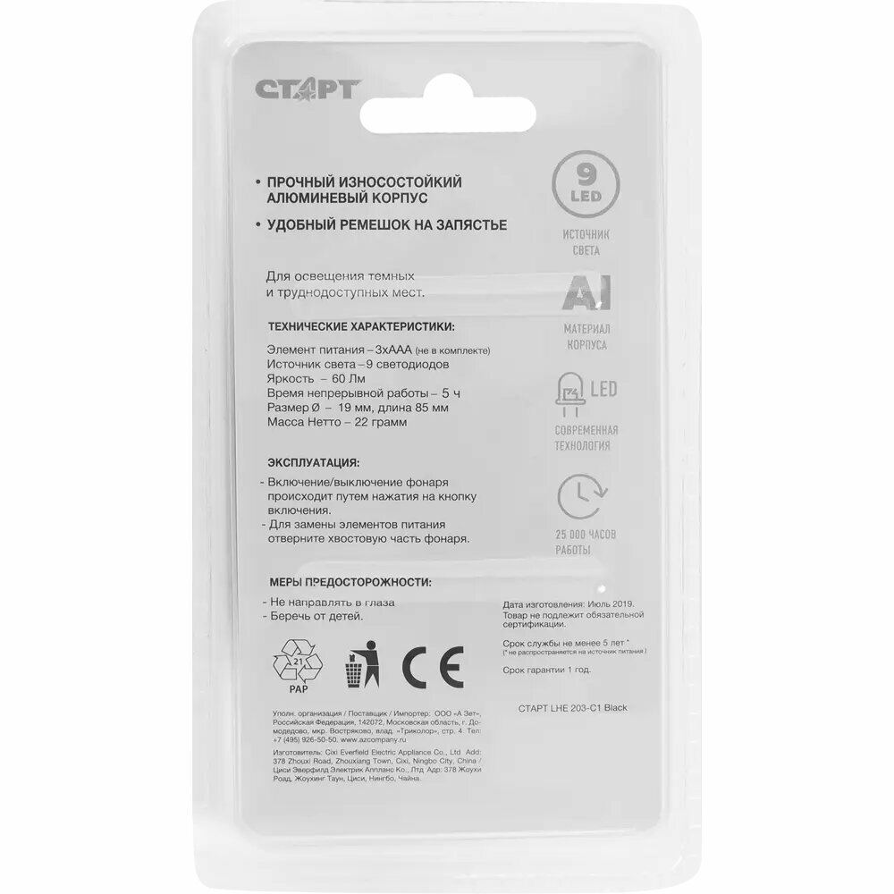 Фонарь светодиодный Старт LHE 203-C1, алюминиевый корпус, 9 LED, черный