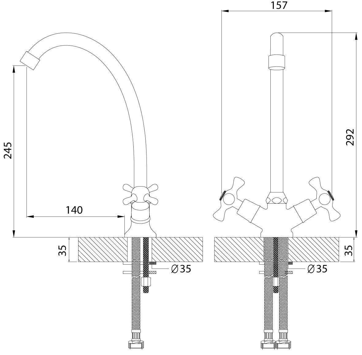 Смеситель для кухни Rossinka H02-71, двухвентильный, хром