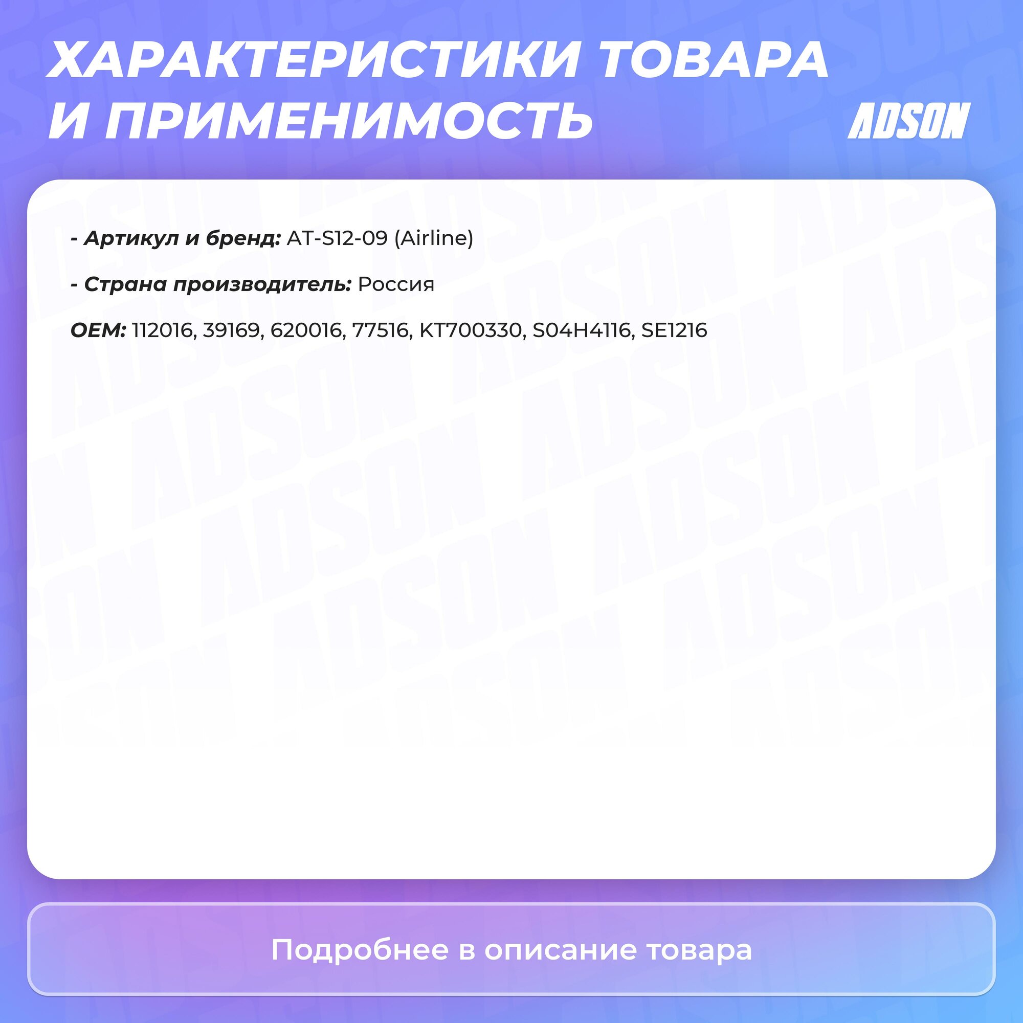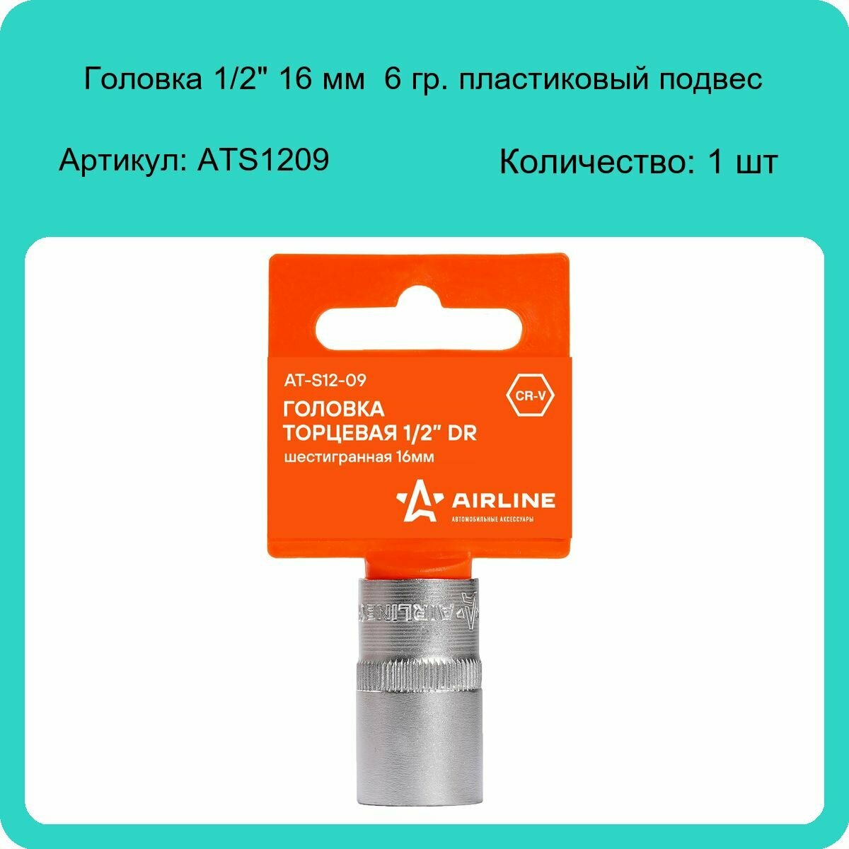 Головка торцевая 12 DR шестигранная 16мм (AT-S12-09), AIRLINE ATS1209 (1 шт.)