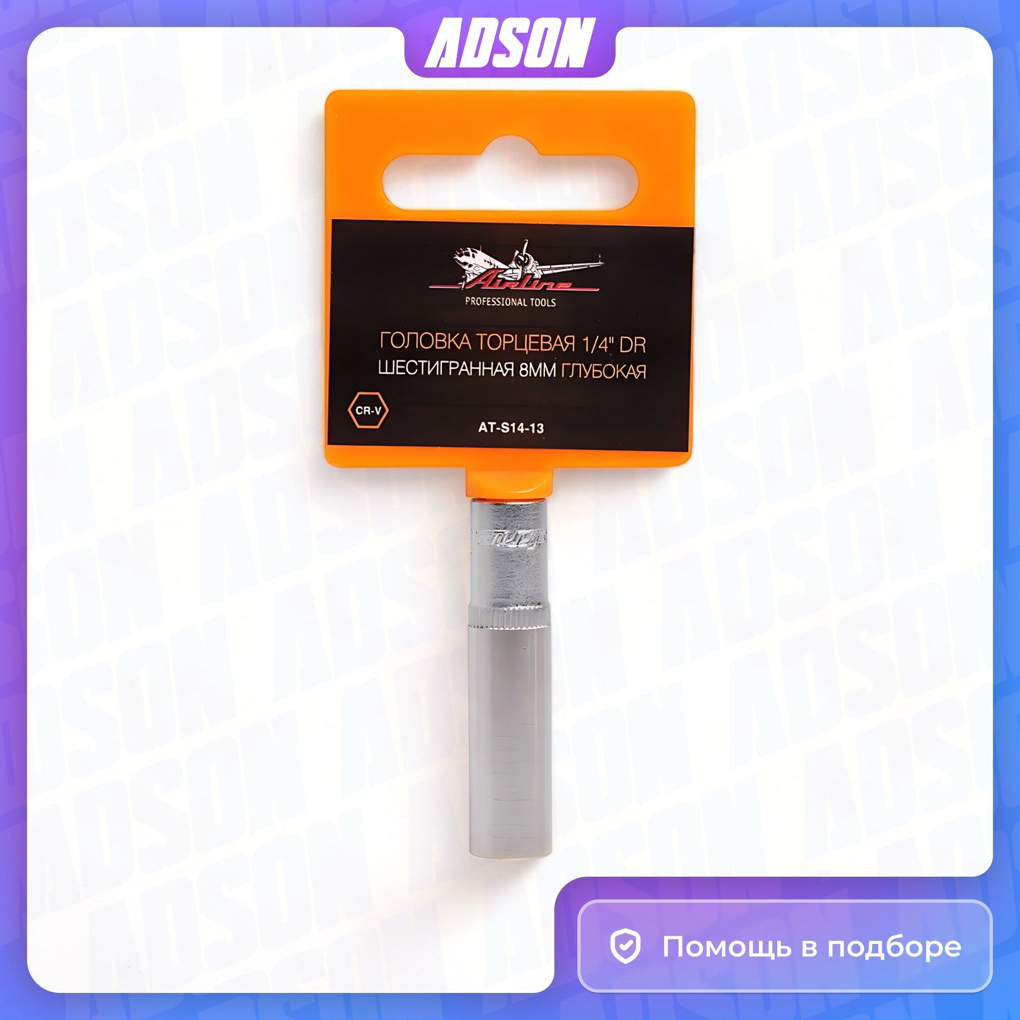 Головка торцевая 1/4" DR шестигранная 8мм глубокая в пакете (AT-S14-13)