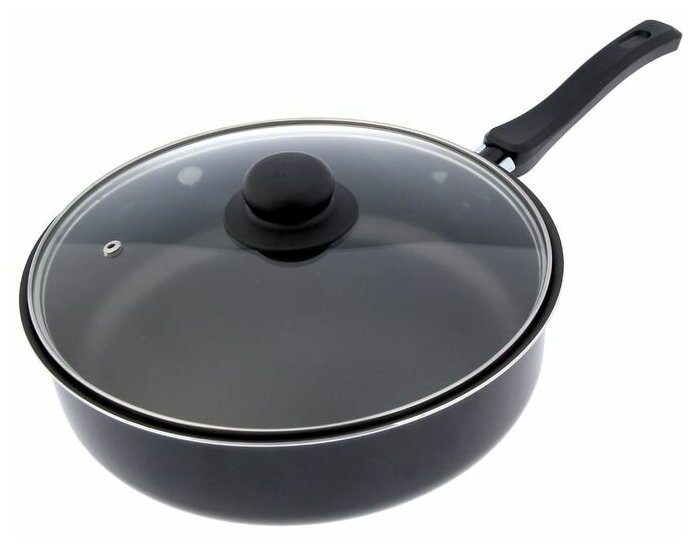 Сотейник Promo, 3.5 л, d=26 см, стеклянная крышка, пластиковая ручка, антипригарное покрытие, цвет чёрный