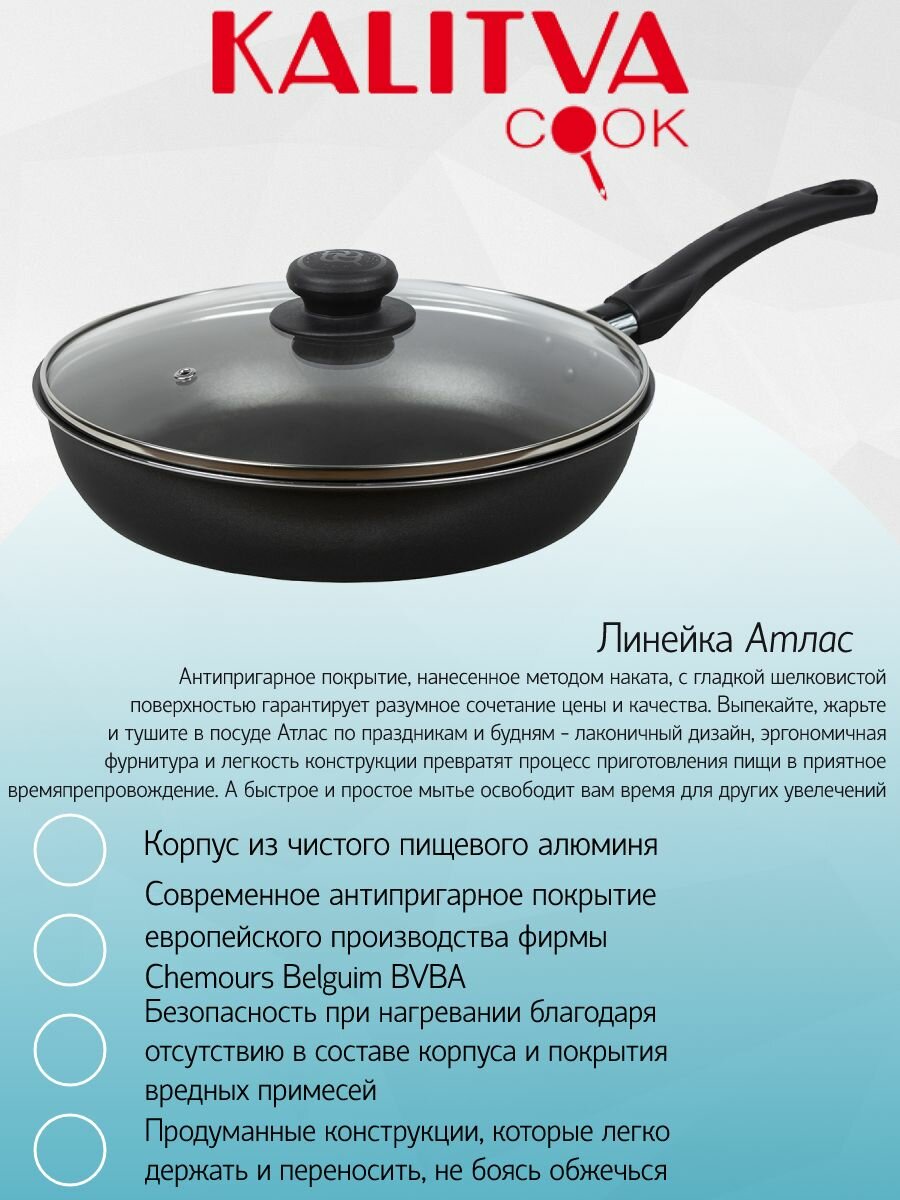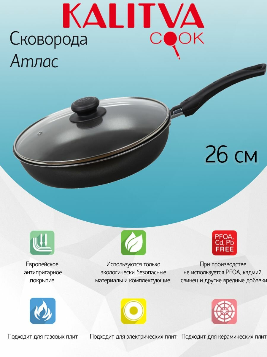 Сковорода 26 см Классика атлас, стеклянная крышка 4790998 интересное: