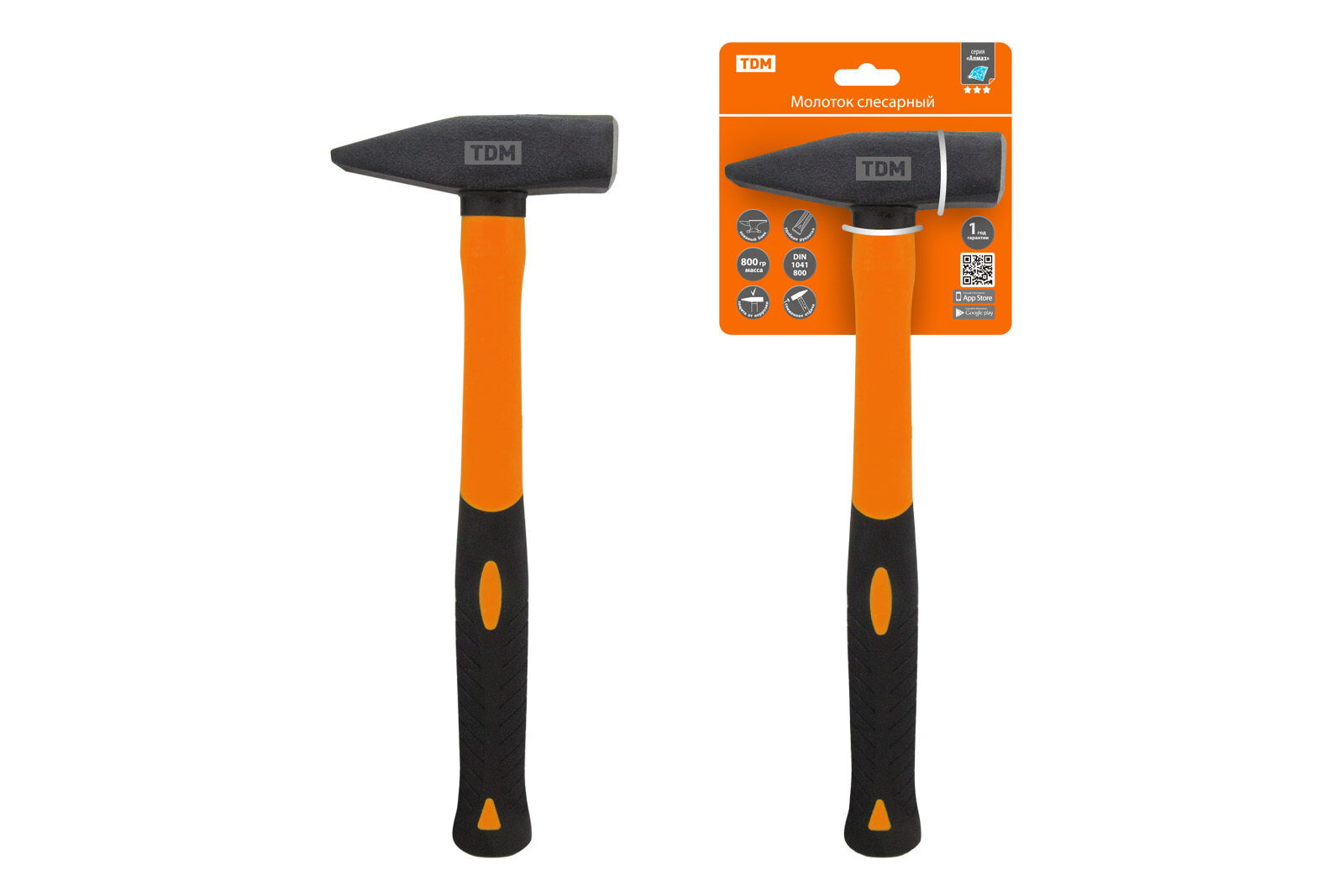 TDM Молоток слесарный, 800 гр, кованый, с усилен. прорезиненной фиберглассовой рукояткой Алмаз