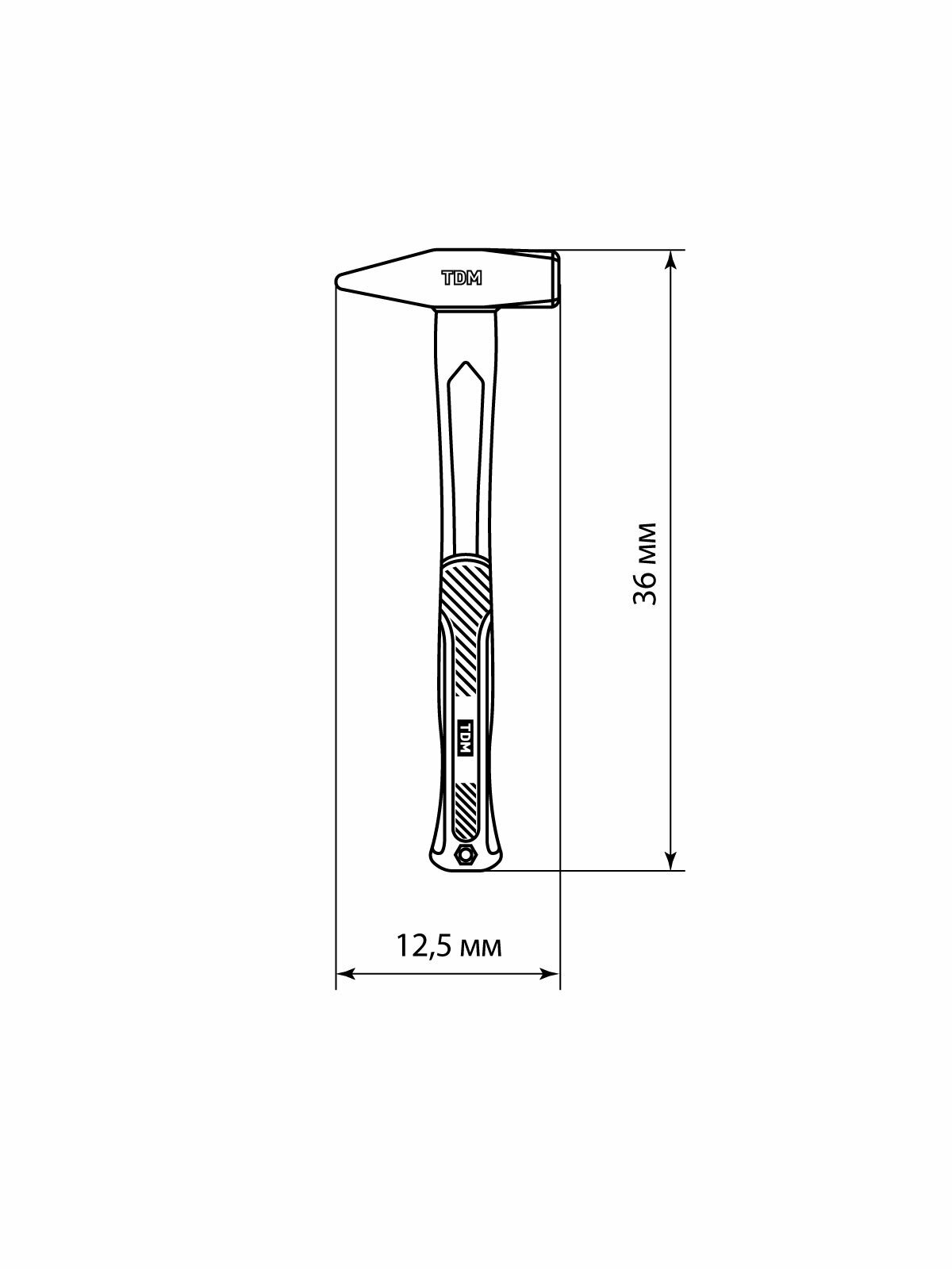 Молоток Tdm Electric слесарный, 800 гр, кованый, с усилен. прорезиненной фиберглассовой рукояткой "Алмаз", SQ1036-0115