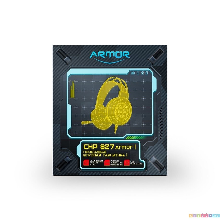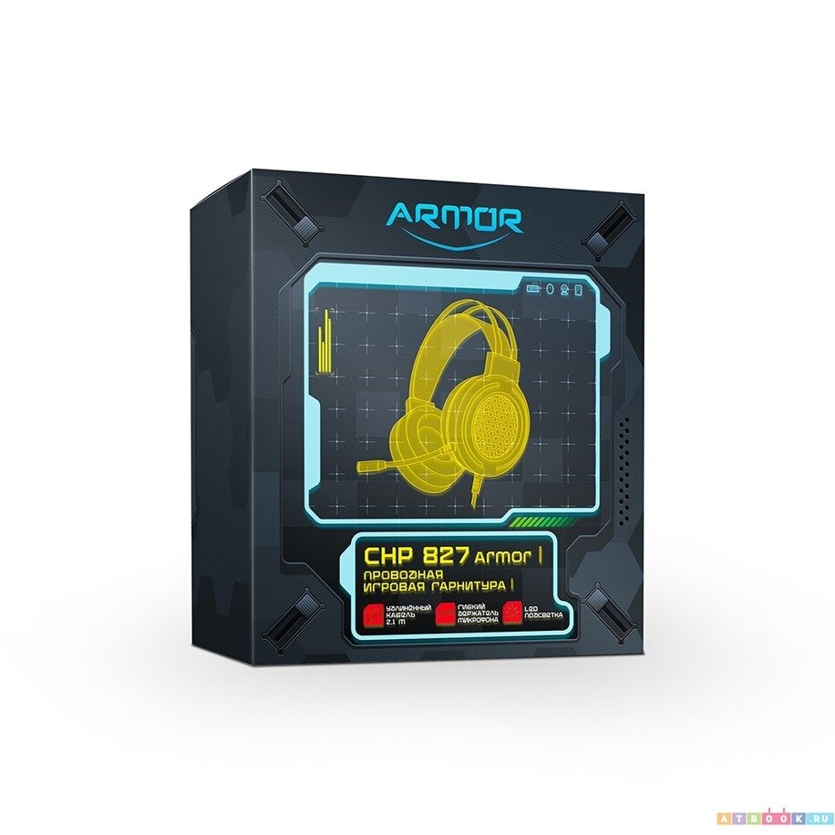 Купить Cbr Наушники CHP 827 Armor, Компьютерная гарнитура проводная стерео, игровая, полноразм. наушники, микрофон с шумоподав., USB 2хмини-джек 3,5 мм,