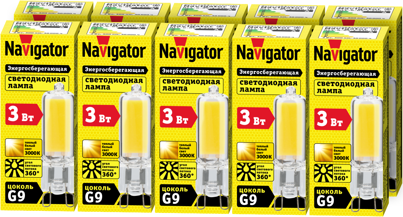 Купить Светодиодная лампа Navigator 61 489, 3 Вт, цоколь G9, теплого света 3000К, упаковка 10 шт.