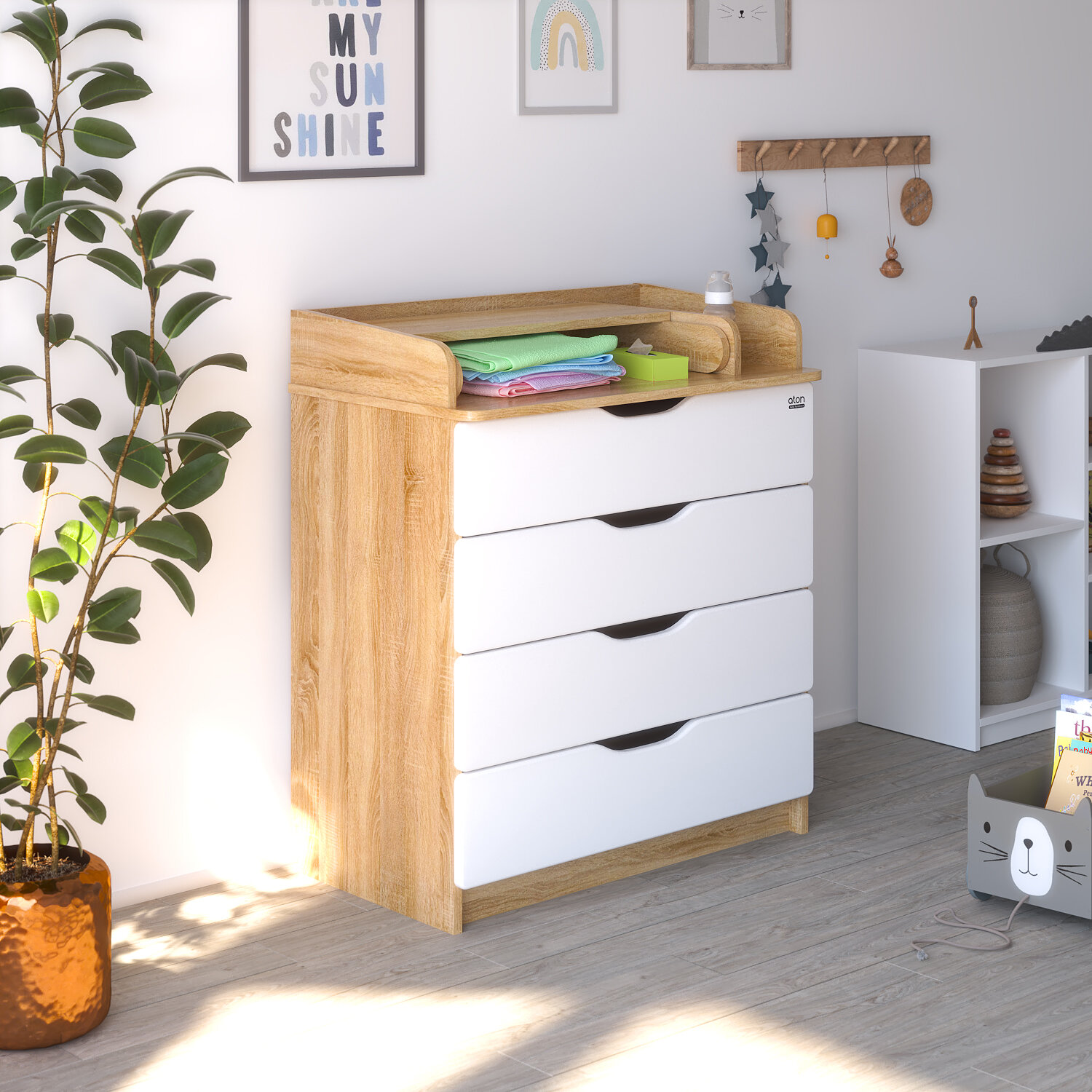 Комод с пеленальной поверхностью, 94x81x48см, 4 выдвижных ящика, Атон Мебель белый