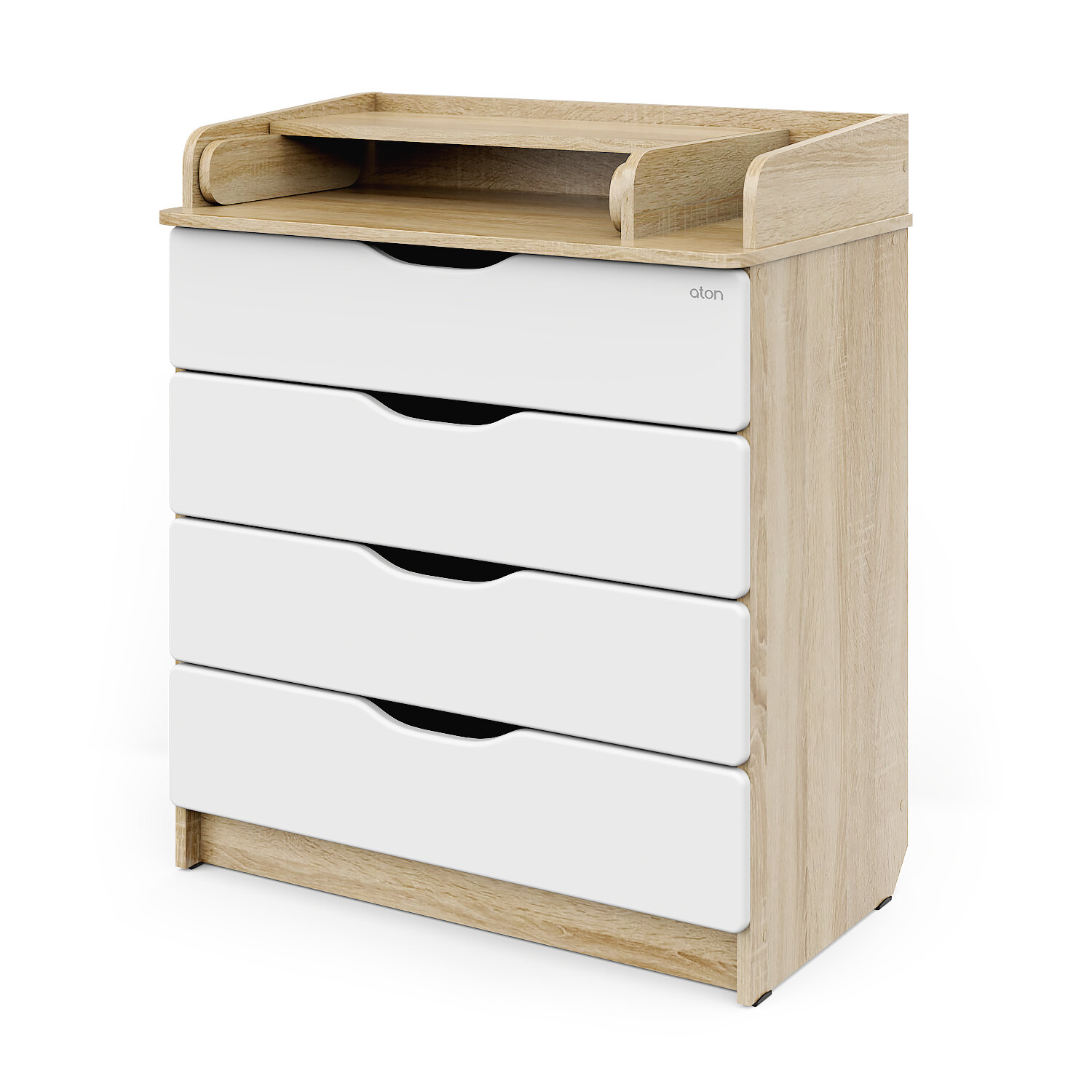Атон Комод детский с пеленальным столиком Сириус-2 Wood 804 ПВХ, белый премиум, 4 ящика
