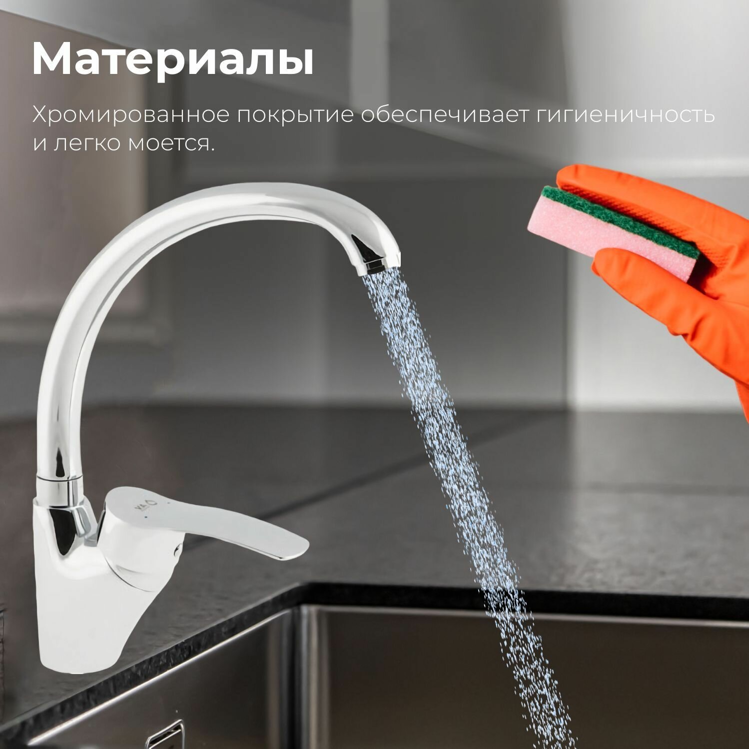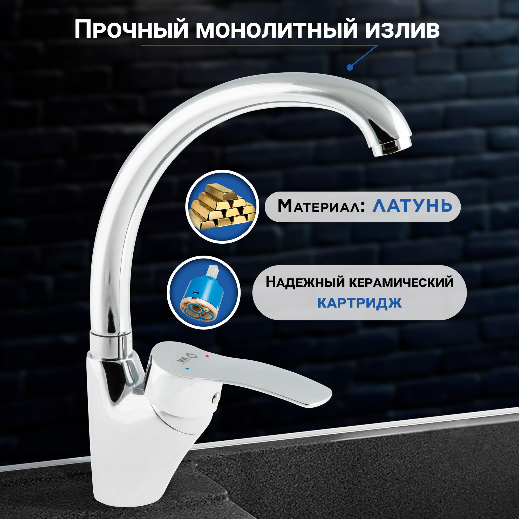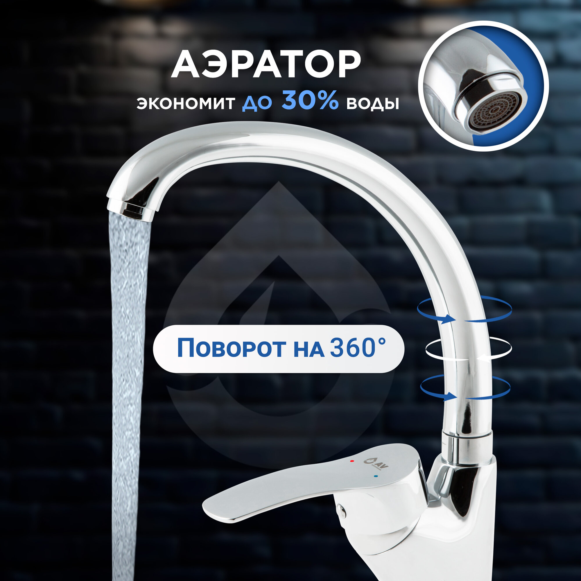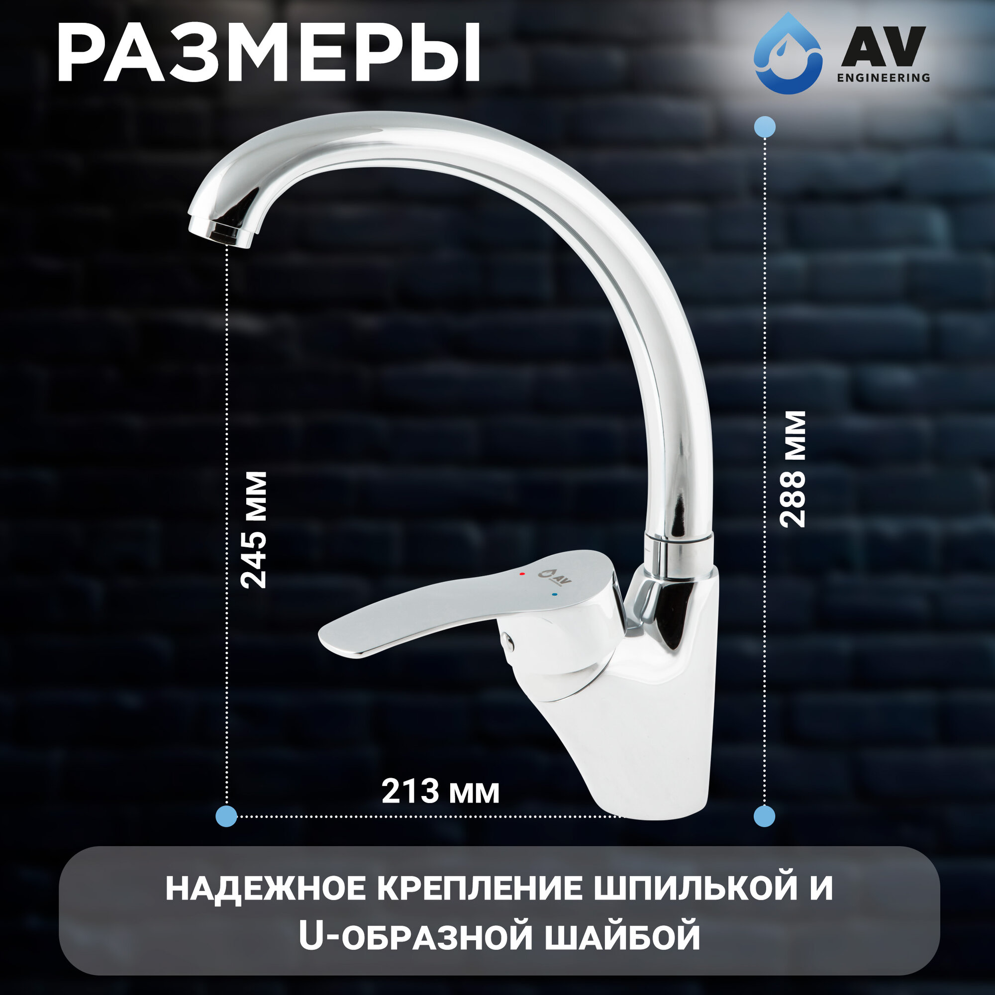 Смеситель для кухни, раковины с поворотным высоким изливом, аэратор AV Engineering (AVQUN4-B088-234)