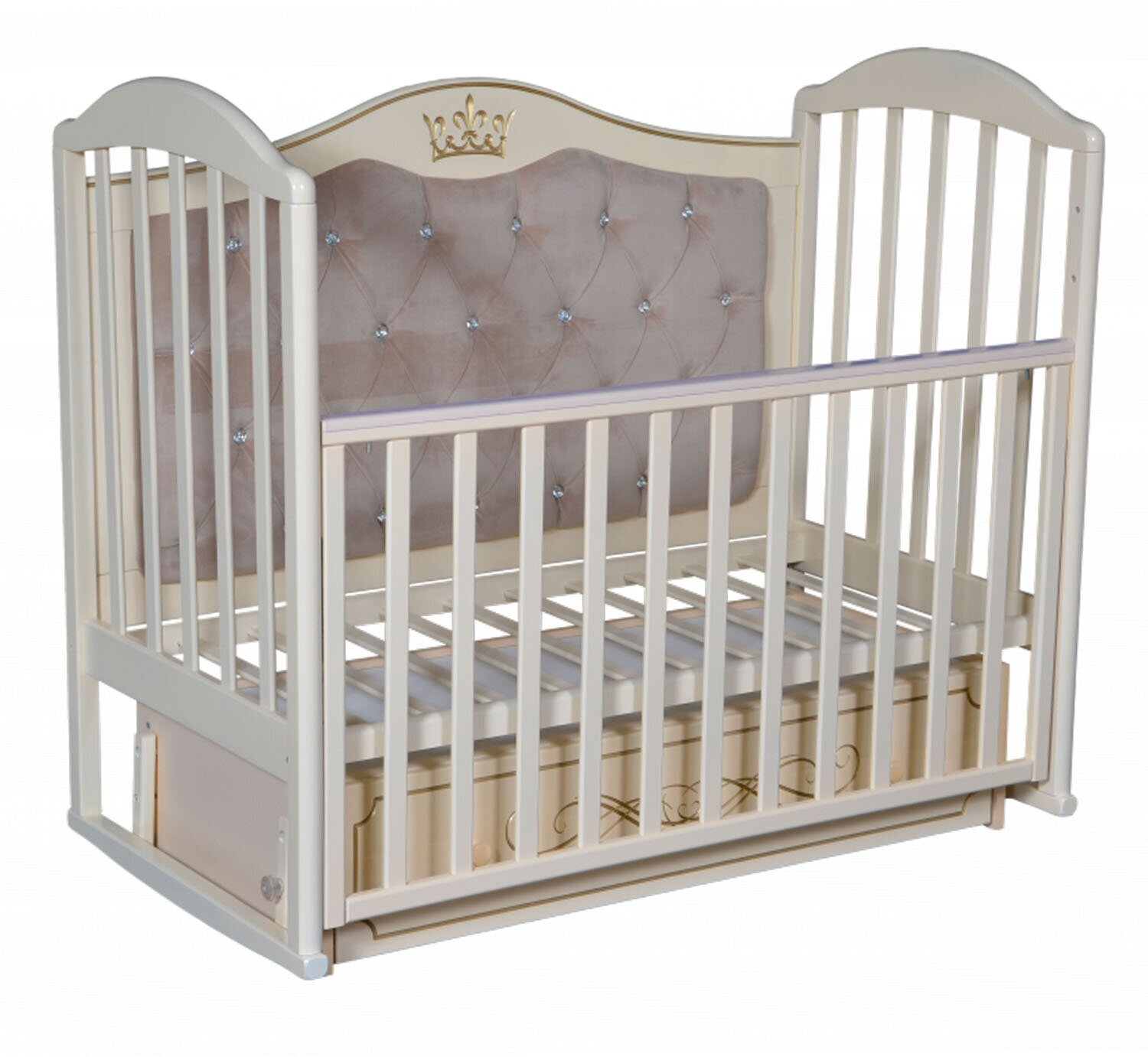 Кроватка детская для новорожденных Антел Anita-999 с мягкой спинкой, маятником и ящиком, массив березы, слоновая кость интересное: