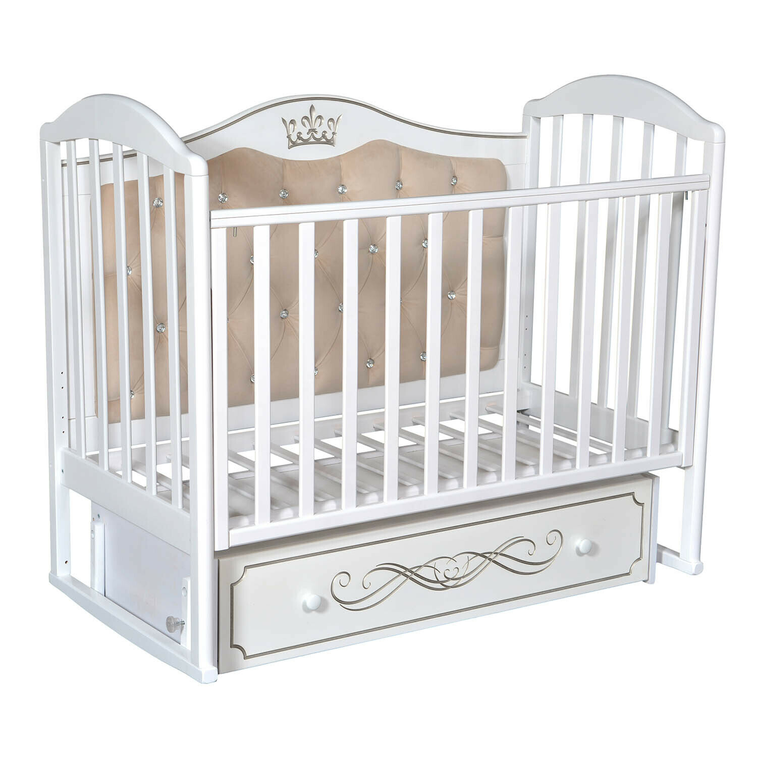 Купить Кроватка детская для новорожденных Антел Anita-999 с мягкой спинкой, маятником и ящиком, массив березы, белый