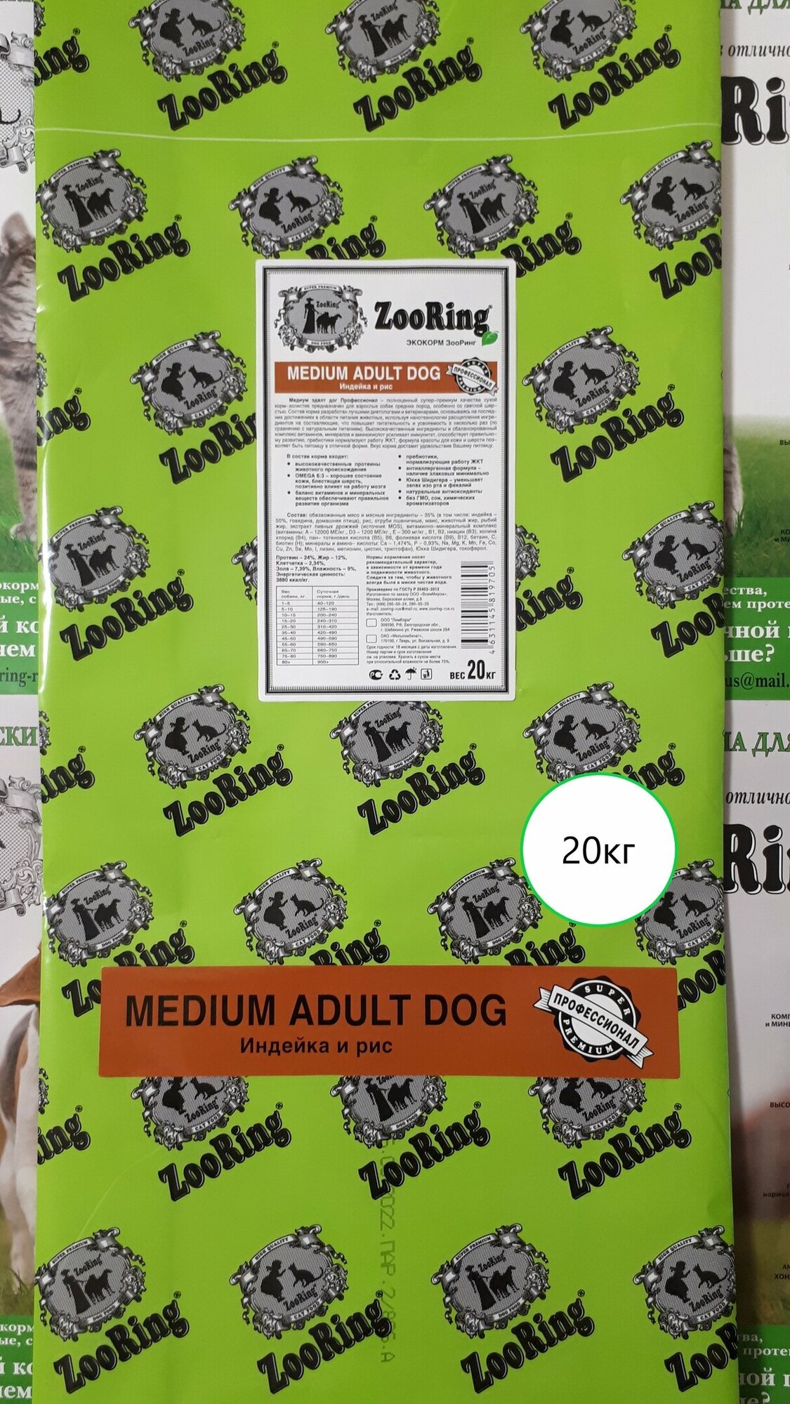 Купить ZooRing Корм сухой для собак Medium Adult Dog Индейка и рис, 20кг