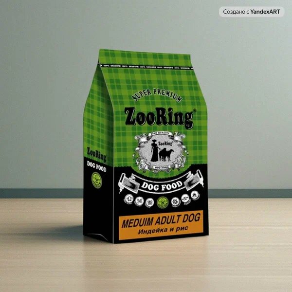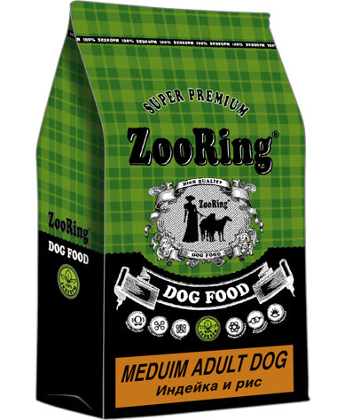 Сухой корм ZooRing для молодых и взрослых собак всех пород MEDIUM ADULT DOG Индейка и рис 1уп. х 2кг.