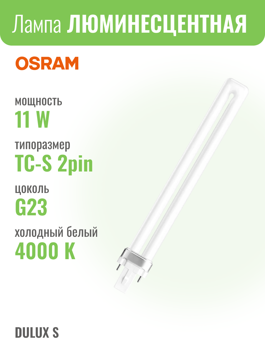 Купить OSRAM DULUX S 11 W/840 G23 лампа компактная люминесцентная 11W 900Lm холодный белый