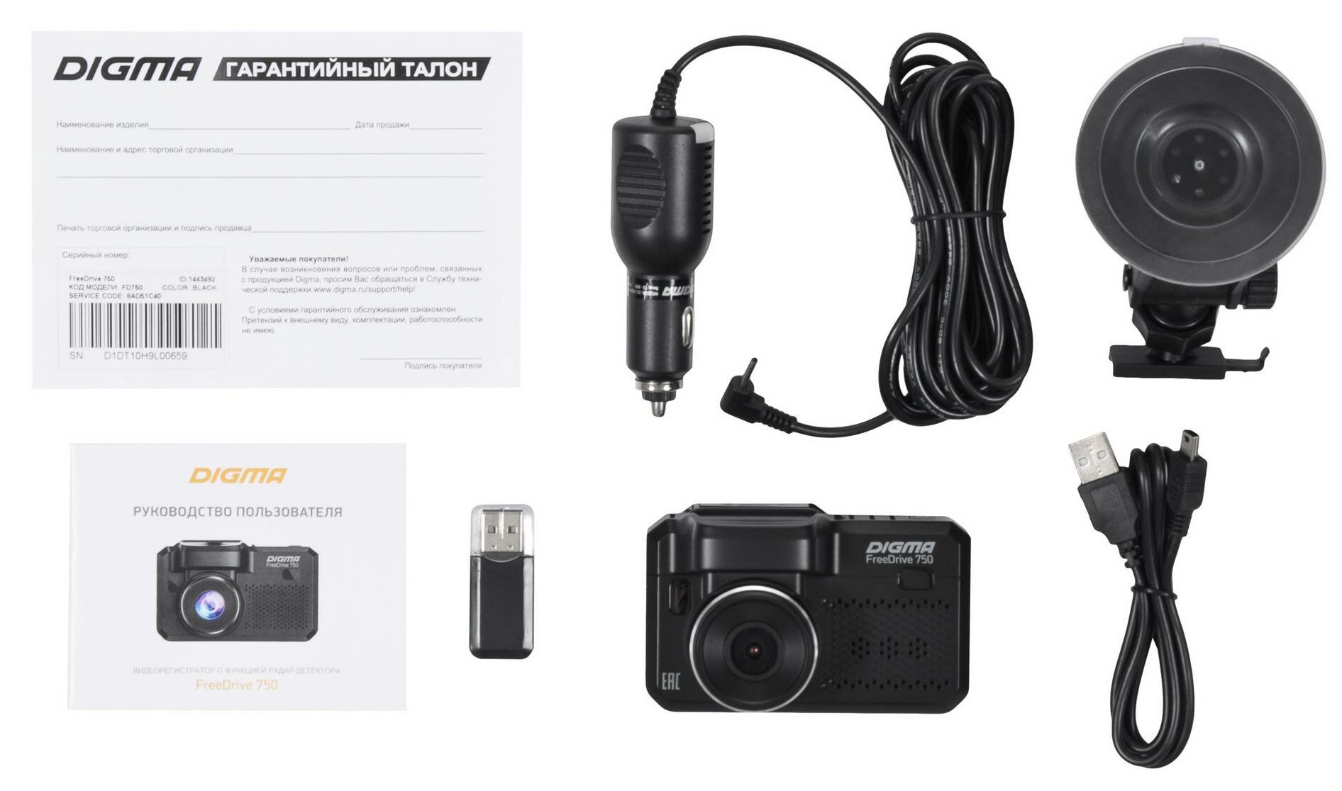 Видеорегистратор с радар-детектором Digma Freedrive 750, GPS, черный