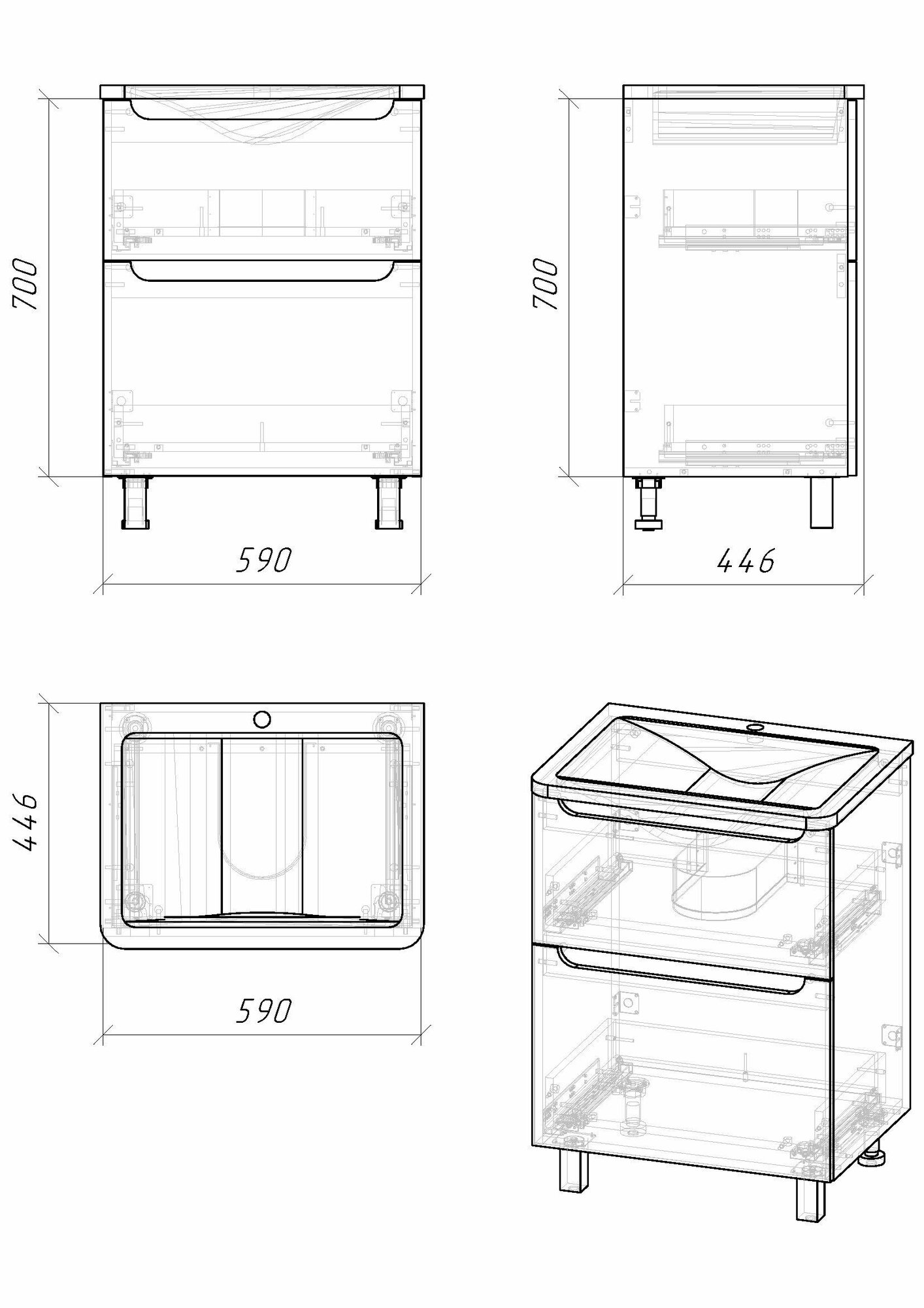 Тумба напольная с 2 ящиками Grossman Адель-70 см под раковину Адель-70