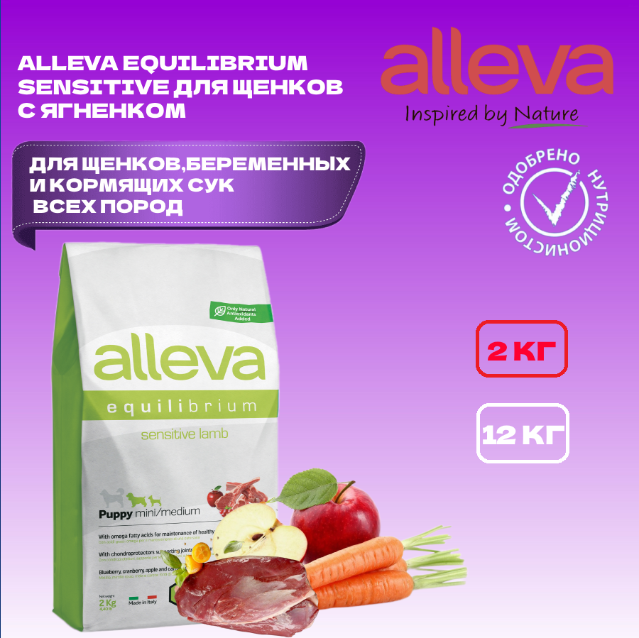 Сухой корм для собак ALLEVA EQUILIBRIUM SENSITIVE LAMB PUPPY MINI MEDIUM Аллева корм Эквилибриум Сенситив для щенков мелких и средних пород с ягненком 2 кг