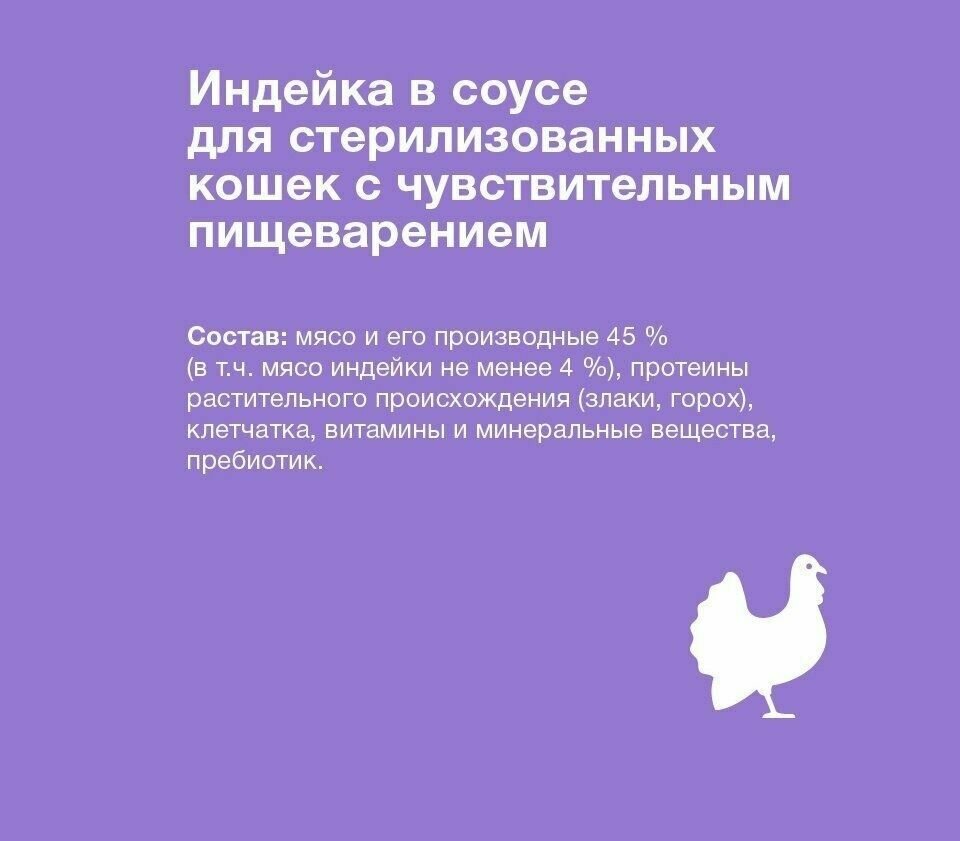 Organix - Паучи для стерилизованных кошек, с чувствительным пищеварением, Индейка в соусе, 85 гр pp49805.1 Упаковка 25 шт