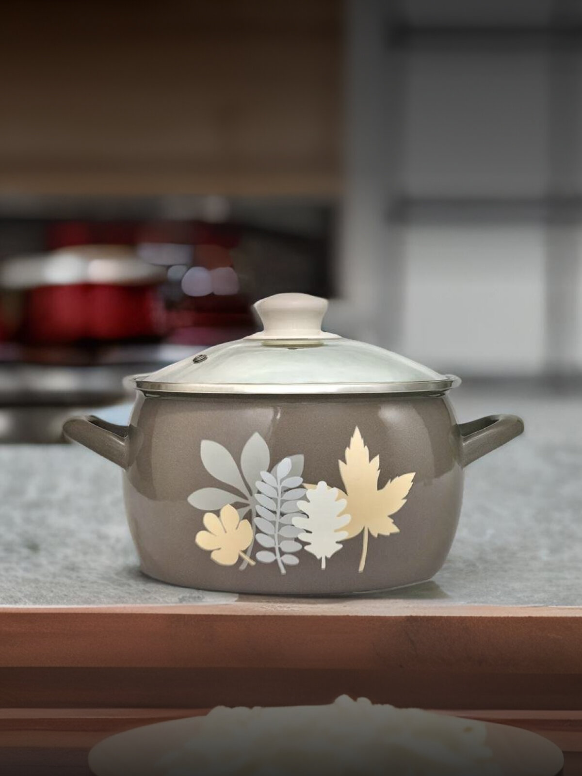 Кастрюля глубокая эмалированная со стеклянной крышкой, 5,7 л, Осенняя соната