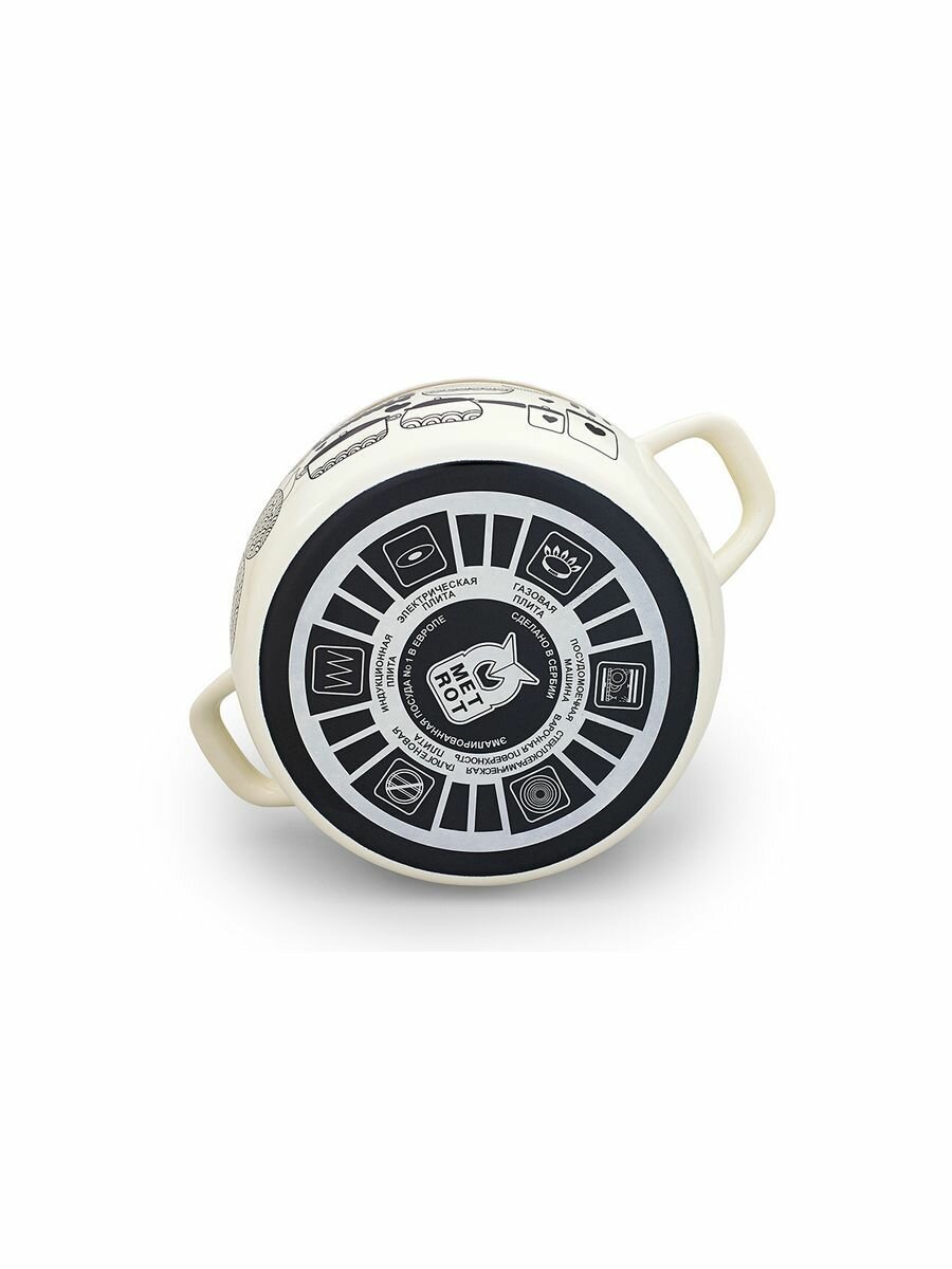 Кастрюля эмалированная из стали Metrot / Метрот Ретро, объемом 3.3л со стеклянной крышкой, для всех видов плит / посуда для кухни