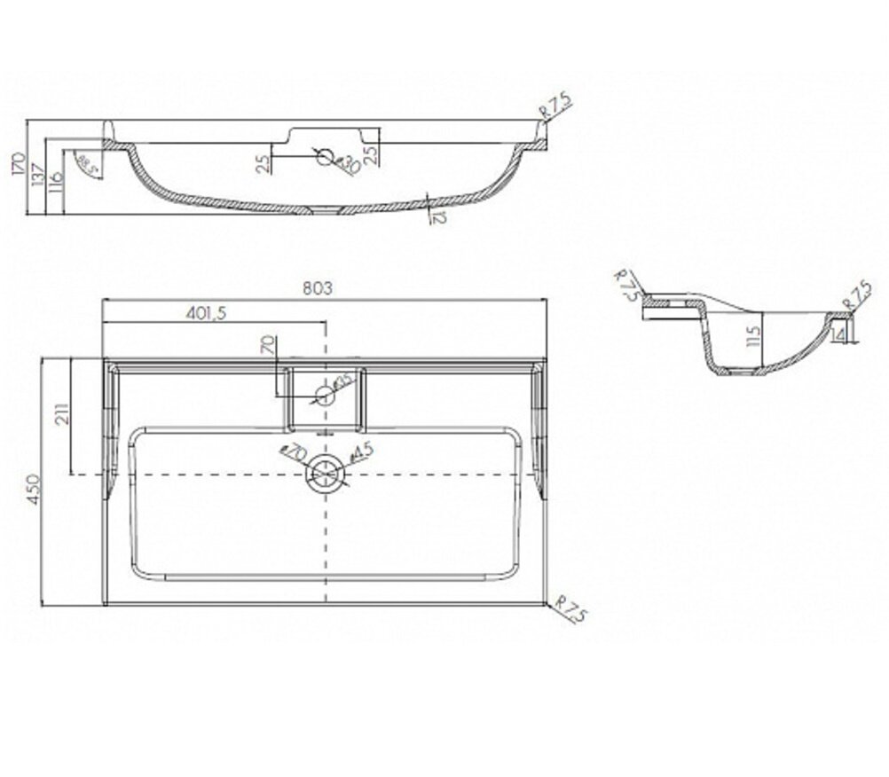 | Число размеченных отверстий под смеситель | отсутствуют |
