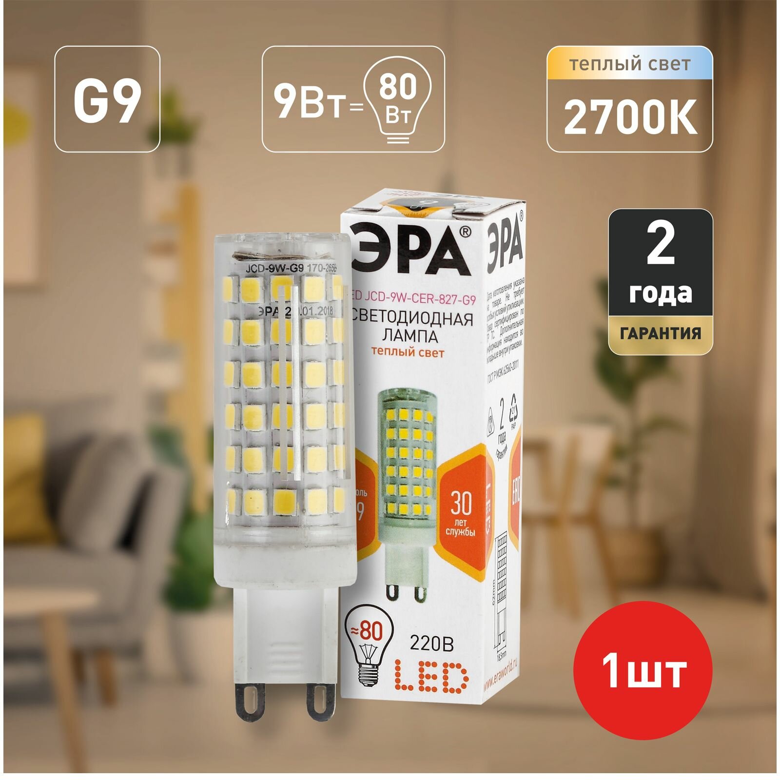 Лампа светодиодная ЭРА Б0033185, G9, JCD, 9 Вт, 2700 К