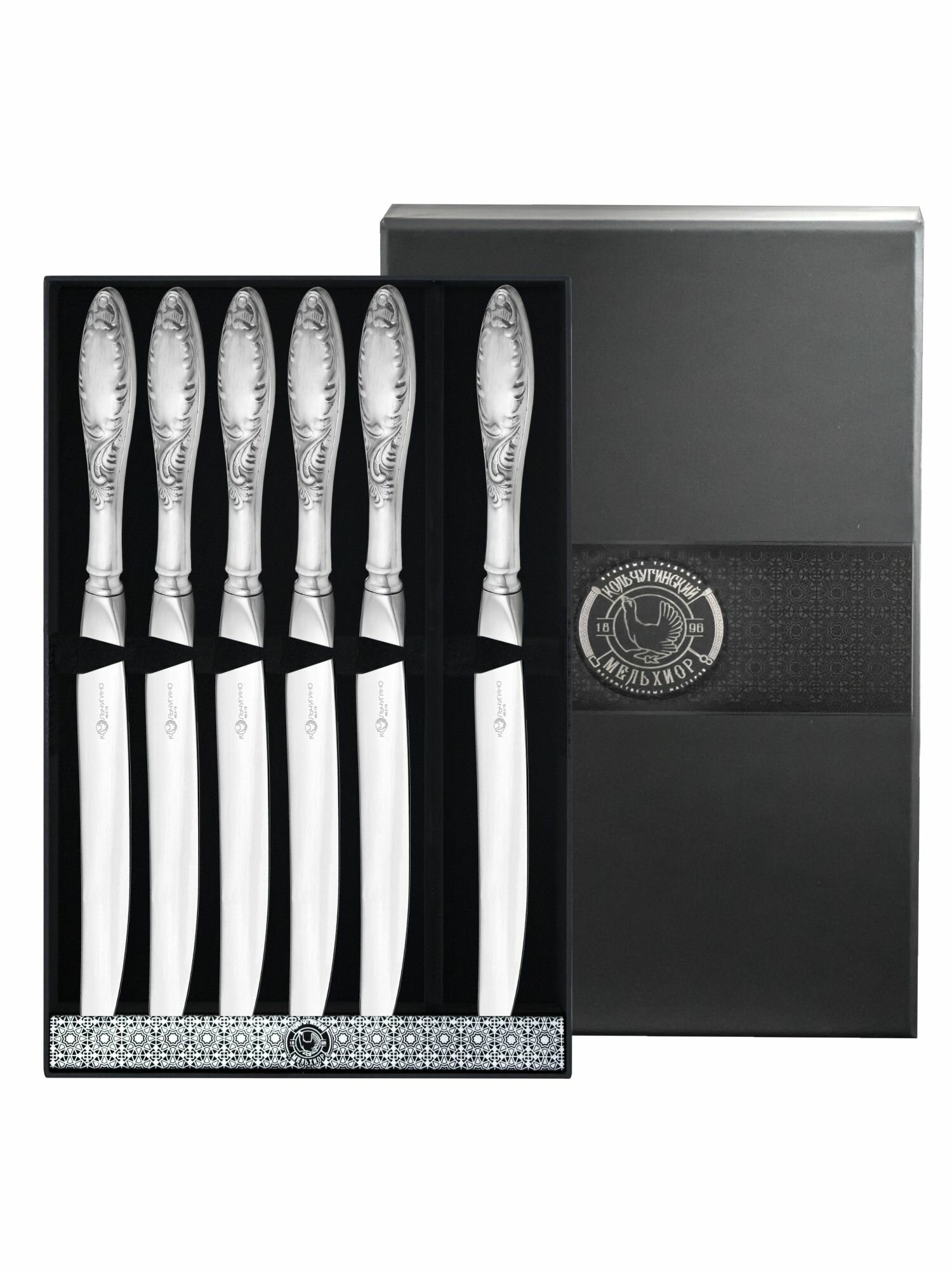 Купить Набор столовых ножей Пламя посеребренный с чернением 6 пр. в футляре