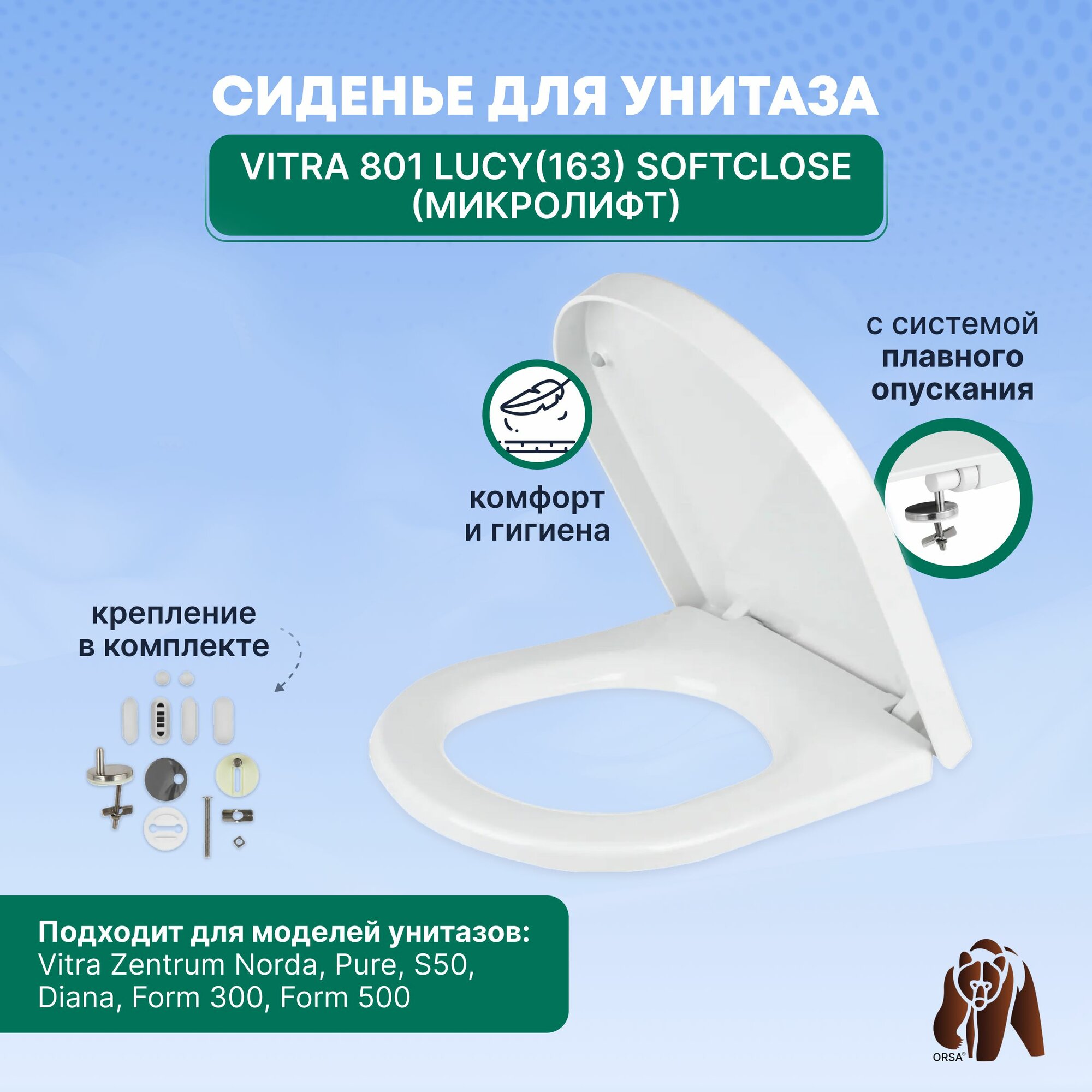 Сиденье с крышкой без микролифта для унитазов Vitra S50, Form 300, Zentrum, Diana 801-003-003